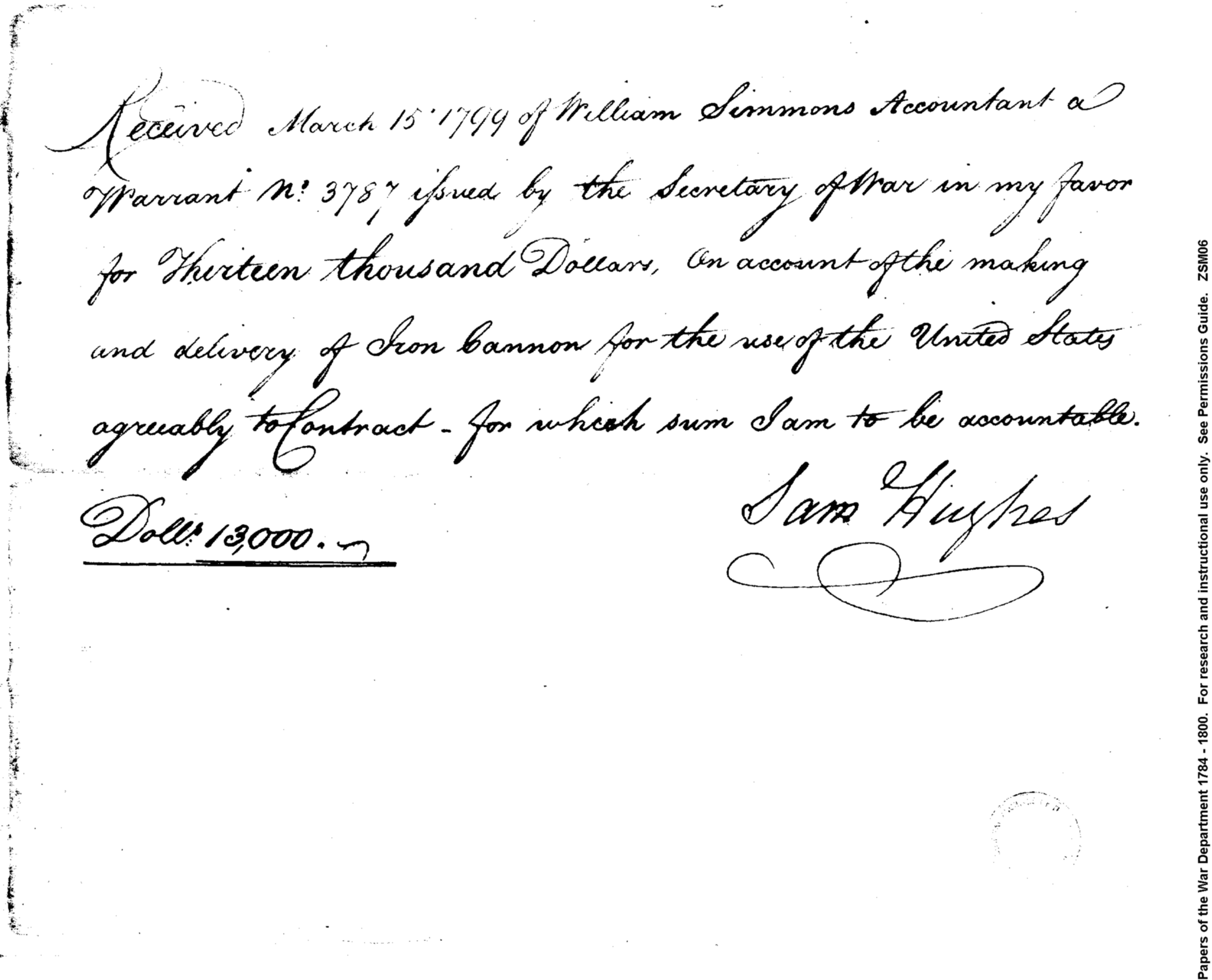 - Document: Receipt of payment on account of making and delivery of iron cannon