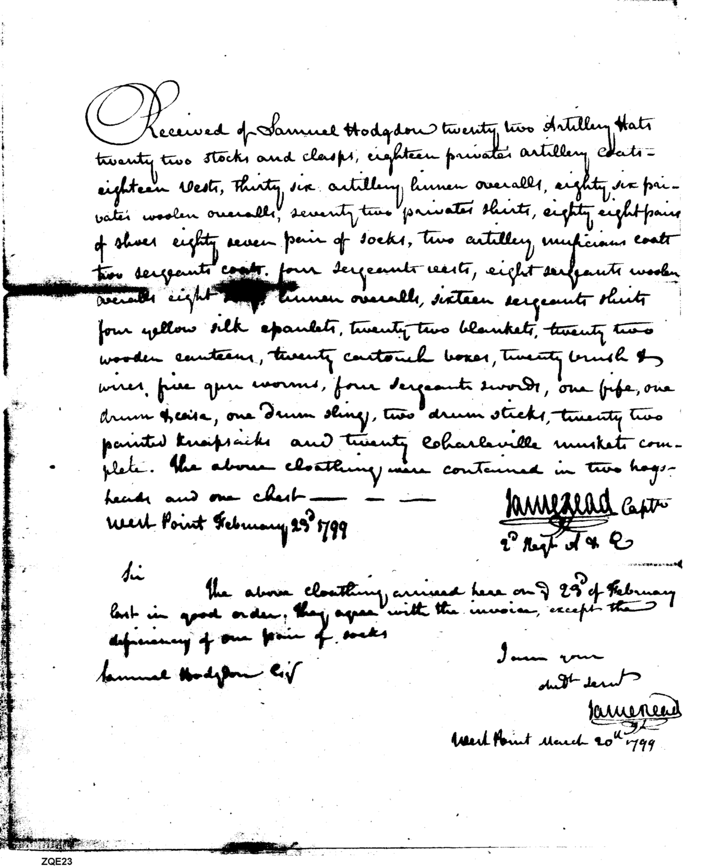 - Document: Receipt for Arms, Clothing, & Equipage