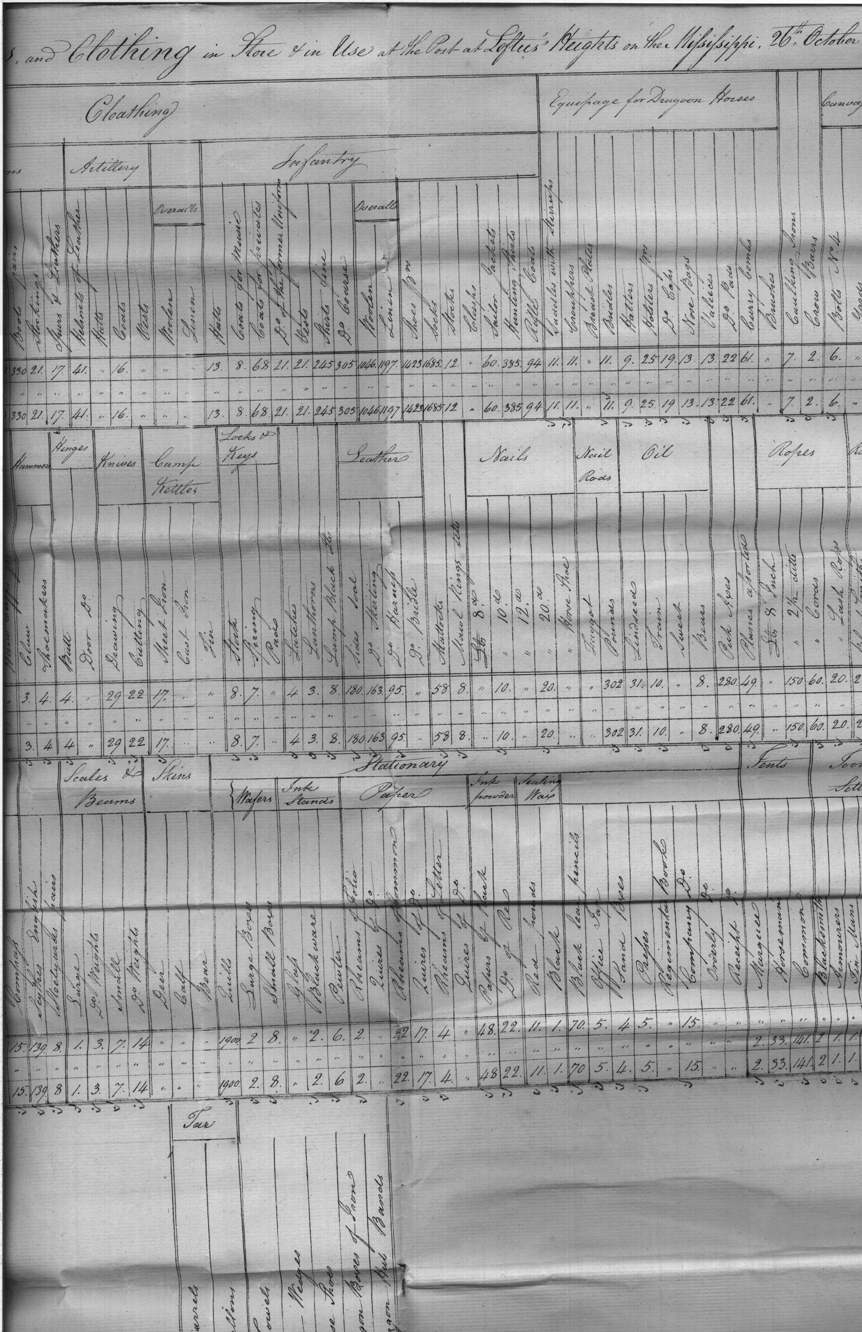 - Document: Return of Quartermaster stores and clothing at the post at Loftus Heights, Mississippi.