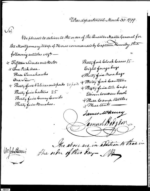 - Document: Request for Issue of Weapons, Tools & Equipment for Montgomery Cavalry