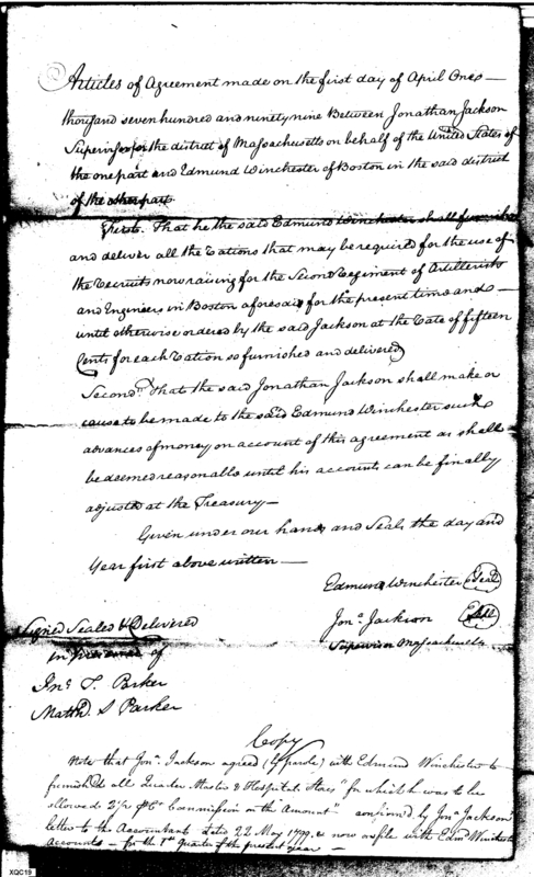 - Document: Contract between Winchester and Jackson for rations for recuits in Boston