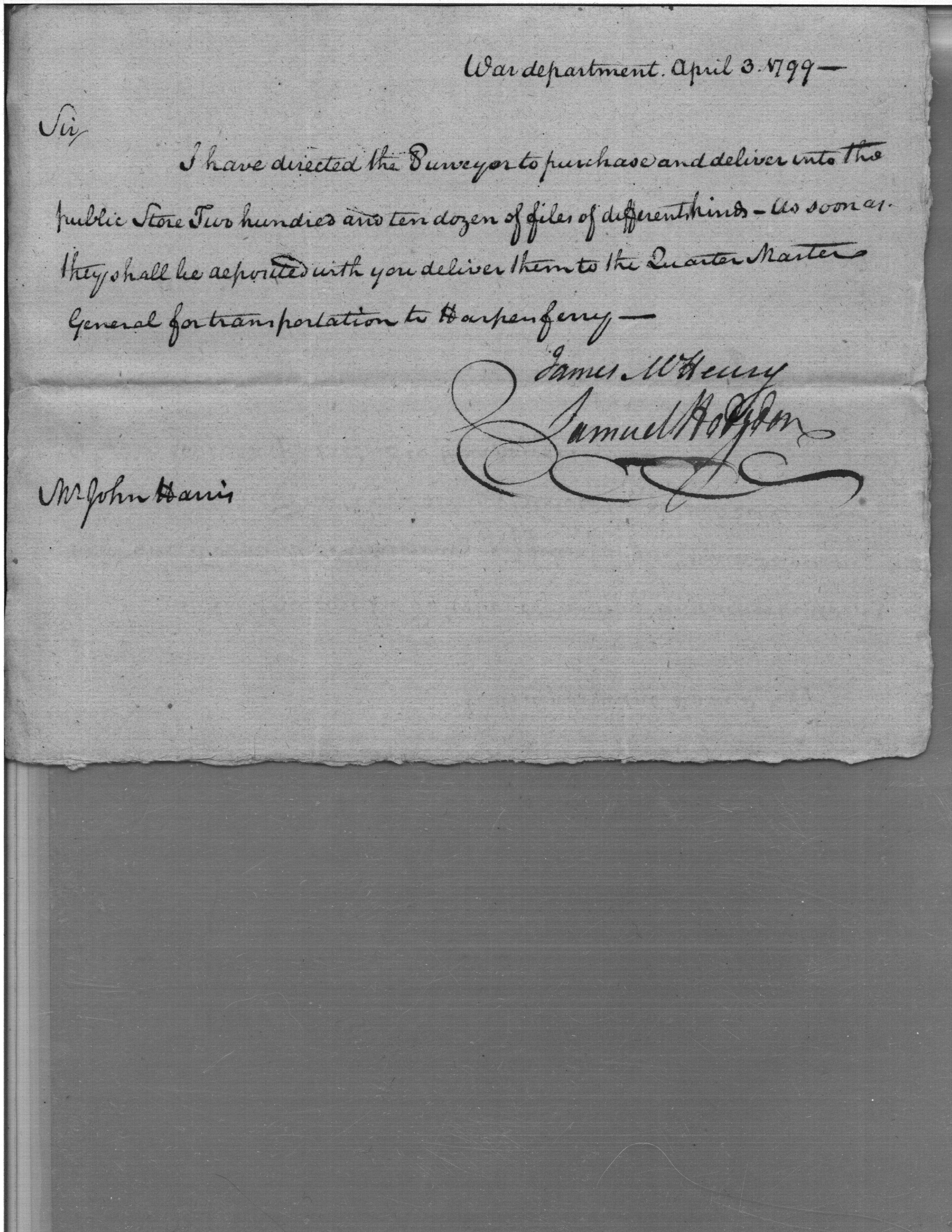 - Document: Notification of Shipment of Files for Harper's Ferry