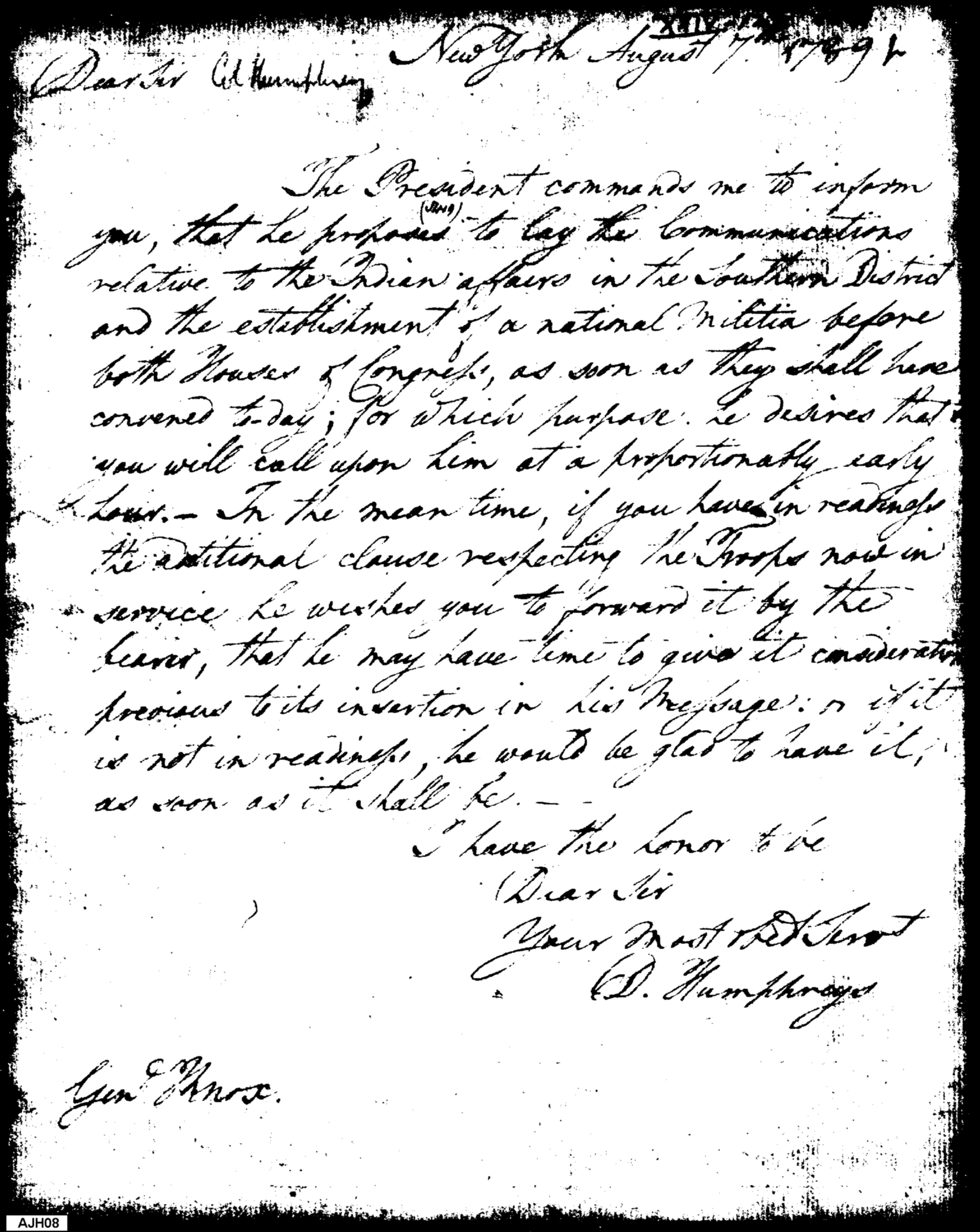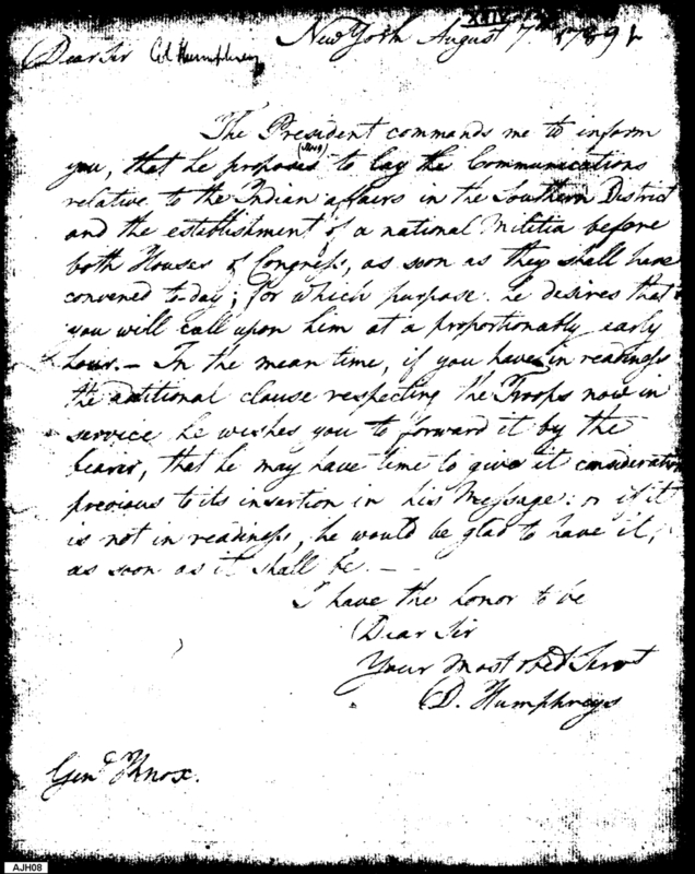 - Document: Humphreys conveys information from Washington to Knox