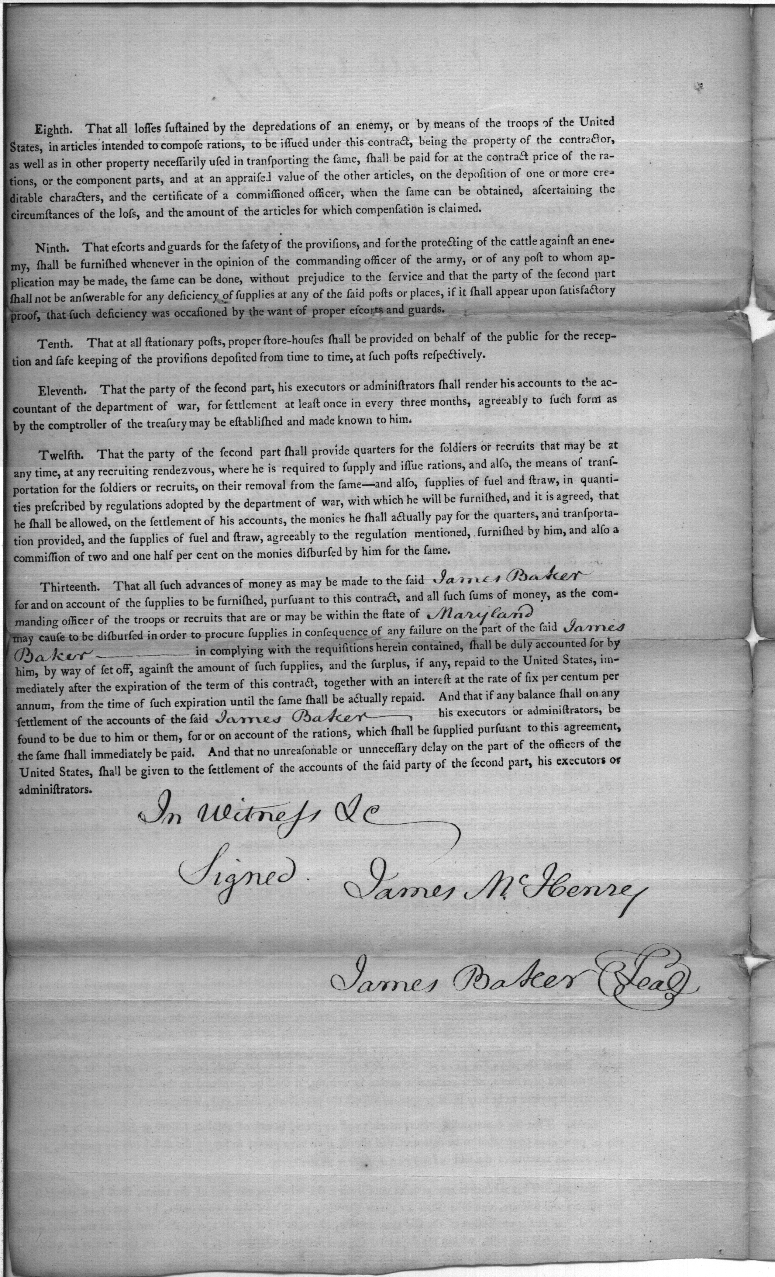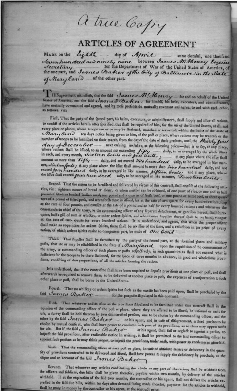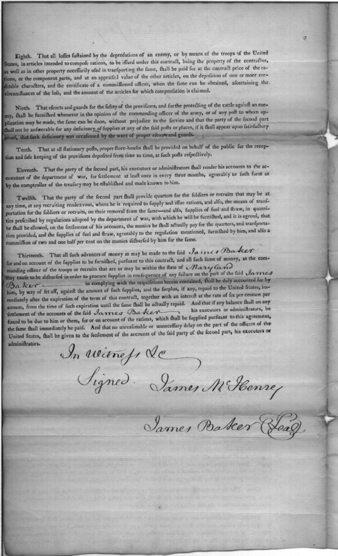 - Document: Copy of contract with James Baker for supplying rations in Maryland