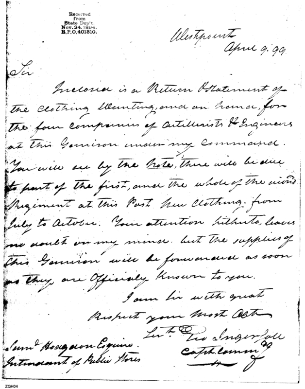 - In source: Collection: Post Revolutionary War Papers, 1784-1815. (RG94)