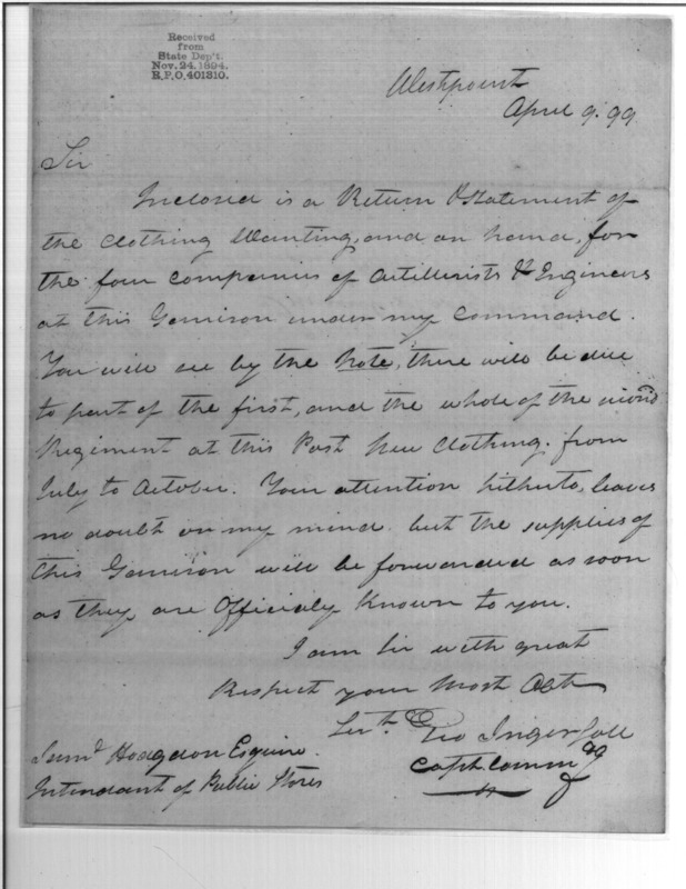- In source: Collection: Post Revolutionary War Papers, 1784-1815. (RG94)