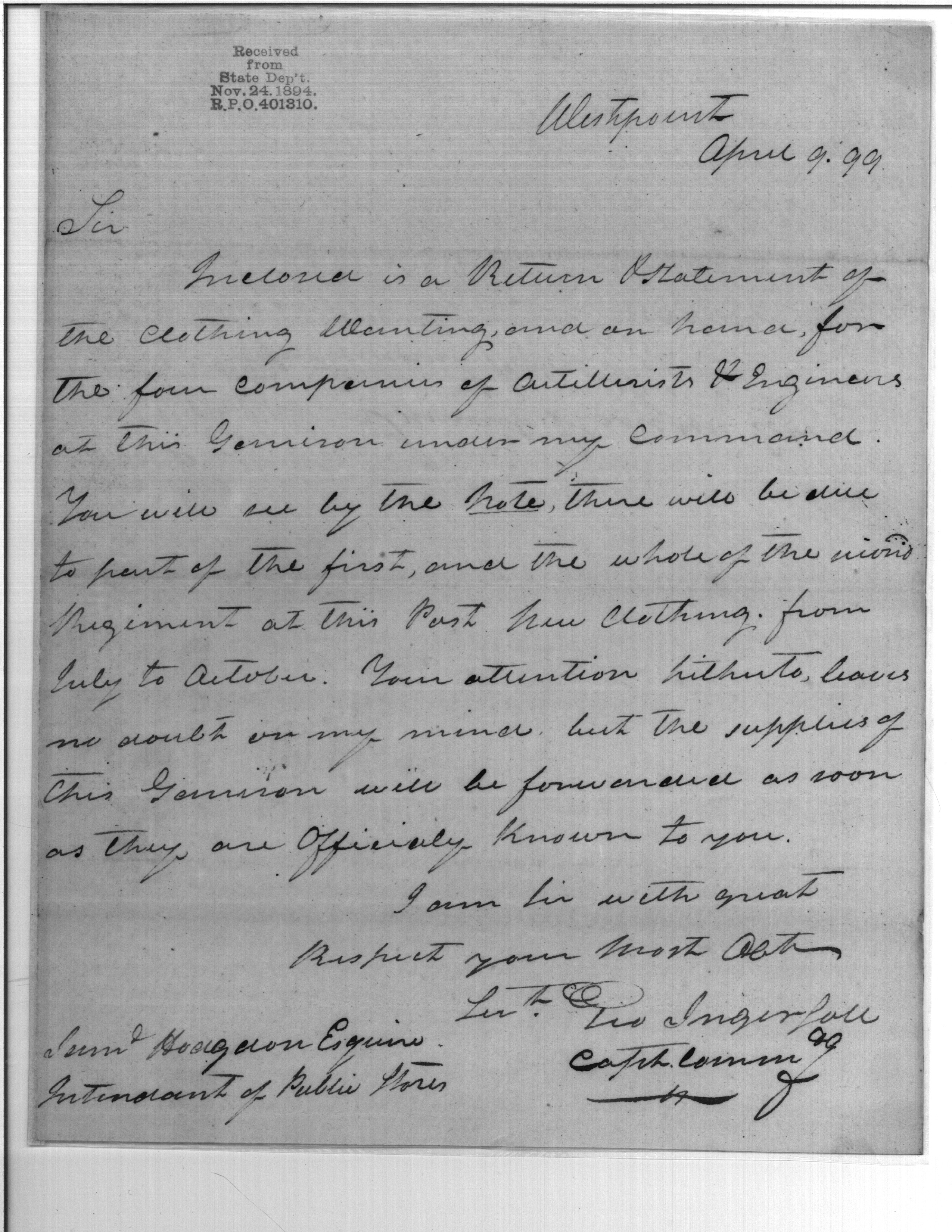 - Document: Clothing Wanted & On Hand at West Point