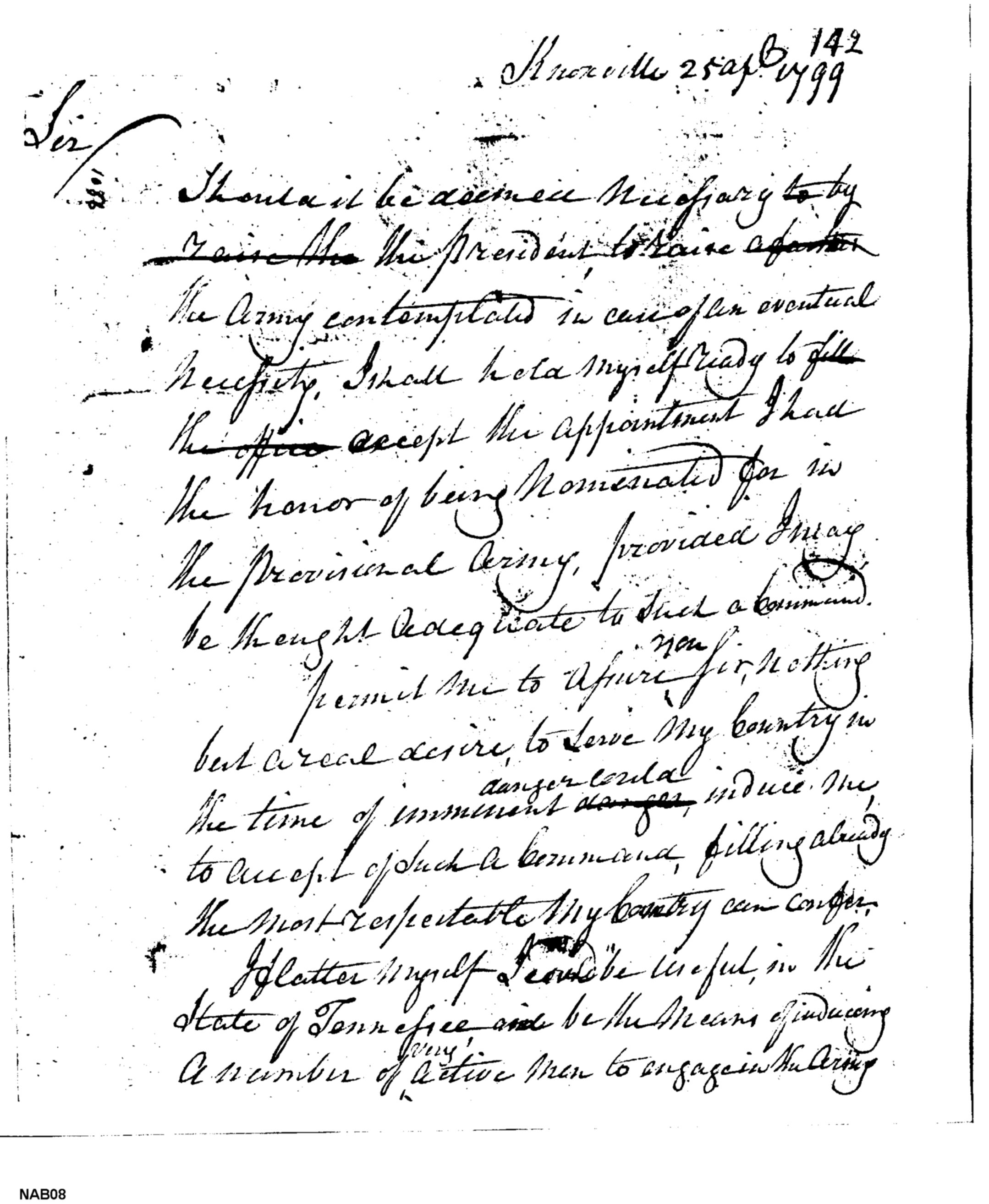- Document: Letter to Secretaries of State and War Concerning Position in Provisional Army
