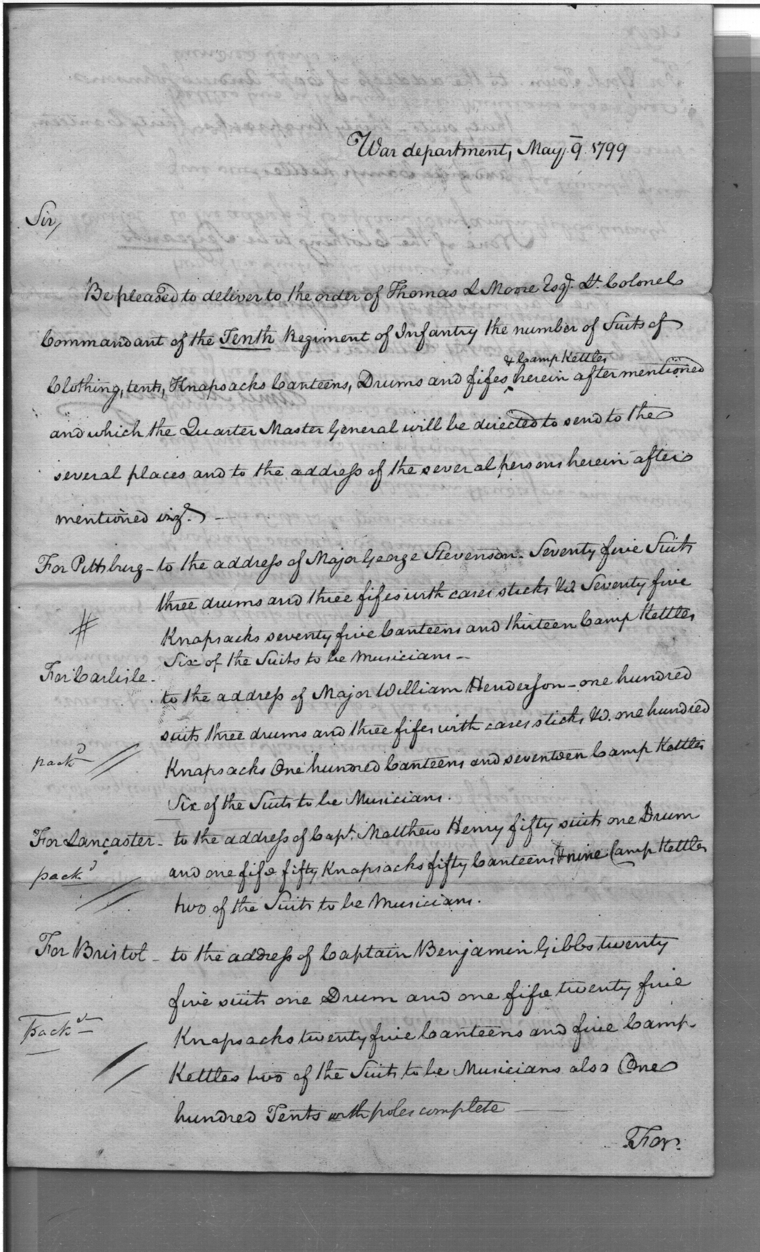 - Document: Request for Issue of Various Military Stores to Various Detachments of the 10th Regiment