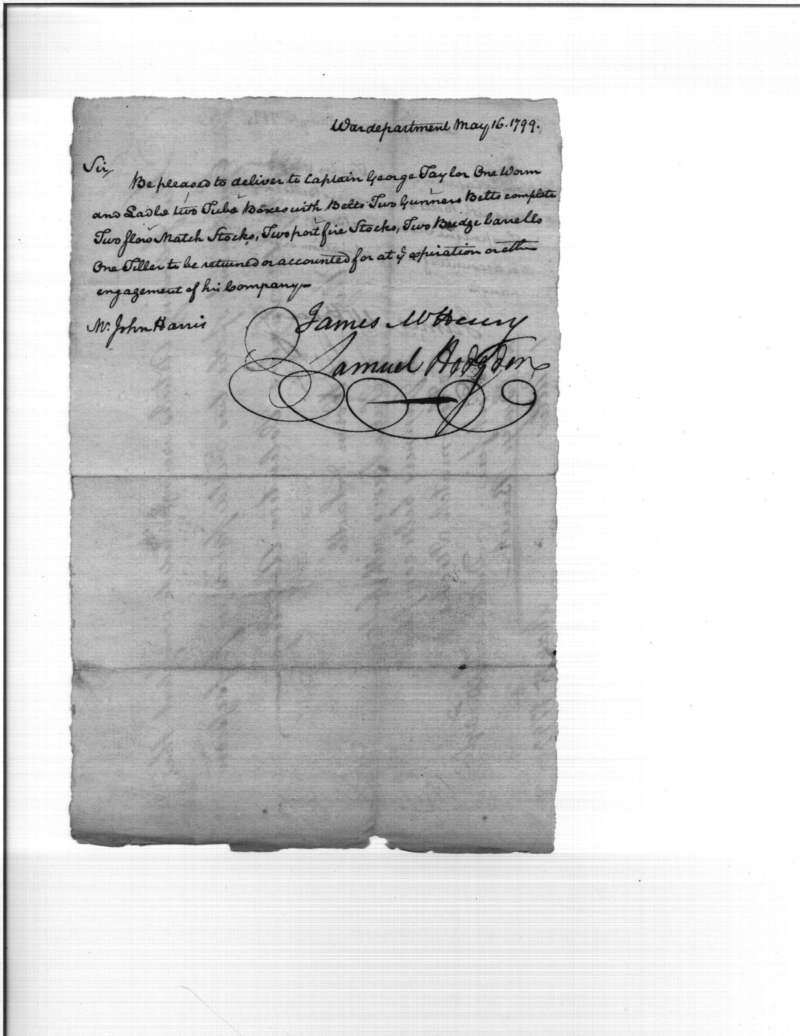 - Document: Request & Order for Issue of Cannon Implements for Artillery Company
