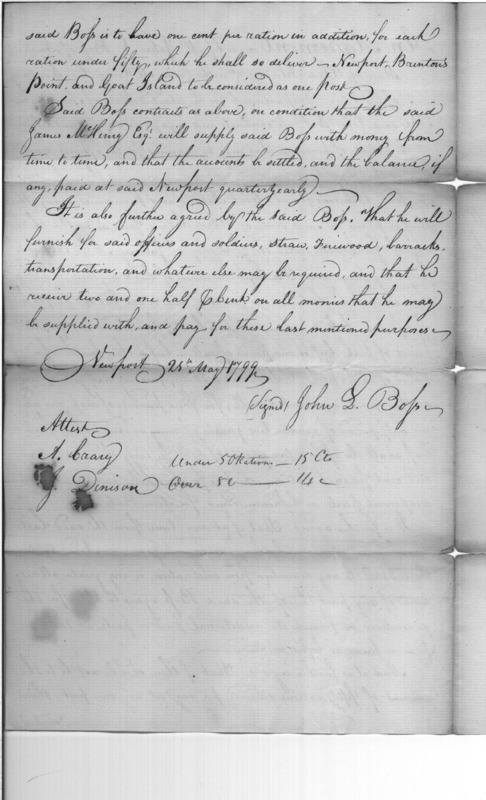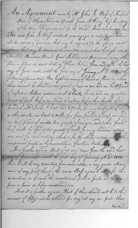 - Document: Copy of a contract with John S. Boss to furnish rations to the troops in the state of Rhode Island