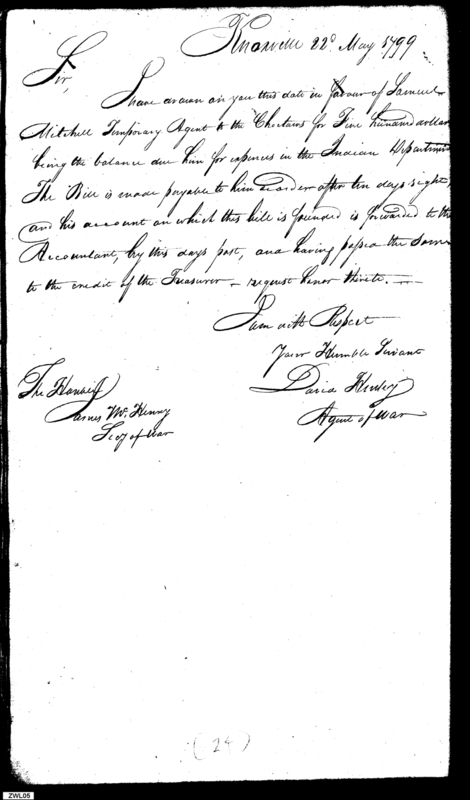 - In source: Collection: Letters Sent by David Henley, Agent of the War Department, May 1, 1799-May 7, 1800. (RG217)