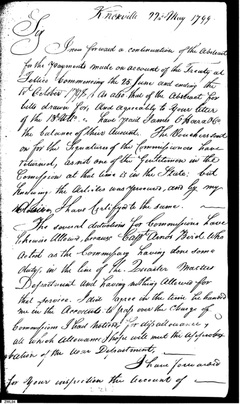 Document ViewerContinuation of Payments on Account for Treaty of Tellico; Accounts for Choctaw Agent Samuel Mitchell
