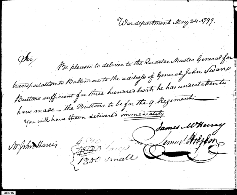 - Document: Request for Issue of 9th Regiment Buttons