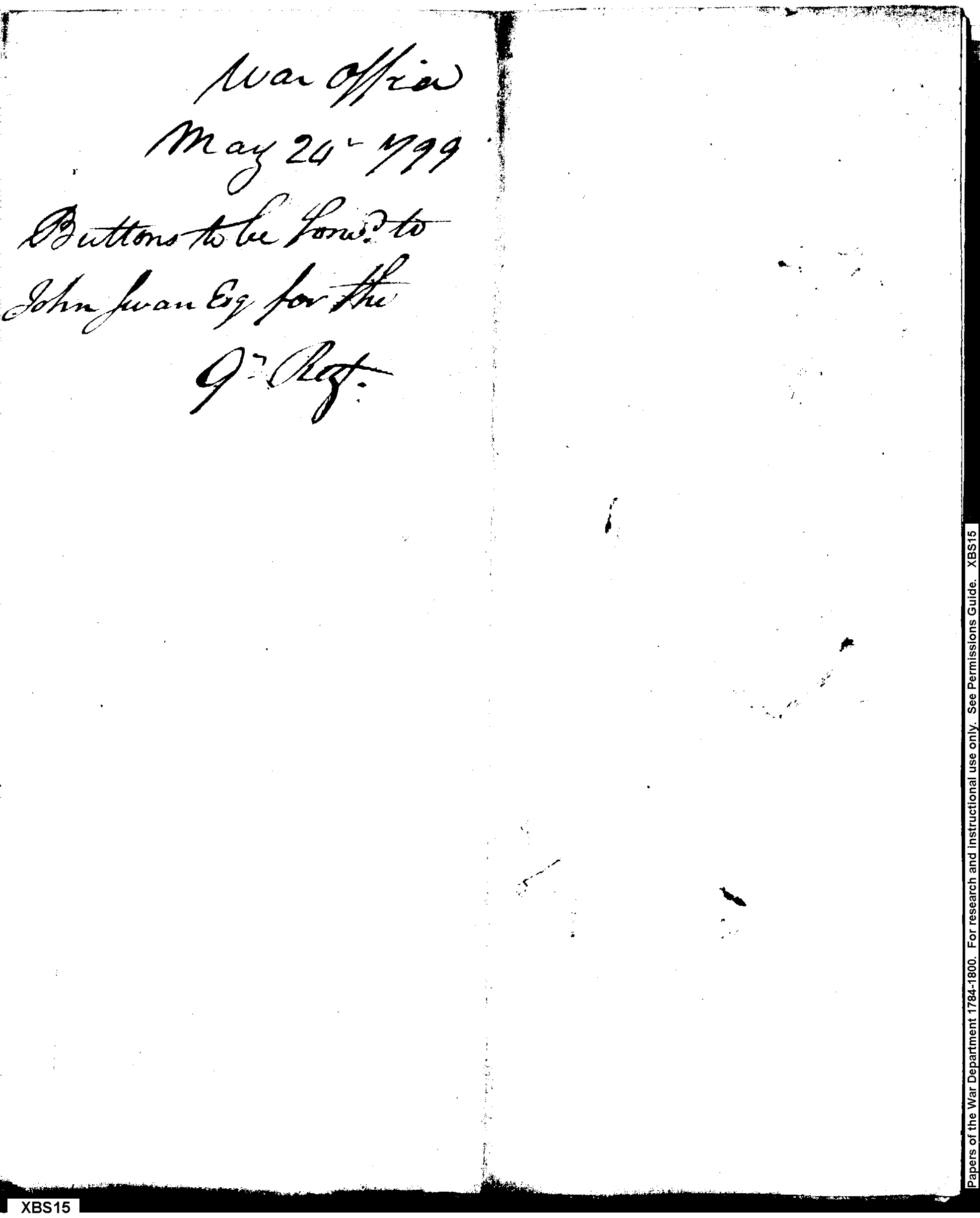 Document ViewerRequest for Issue of 9th Regiment Buttons