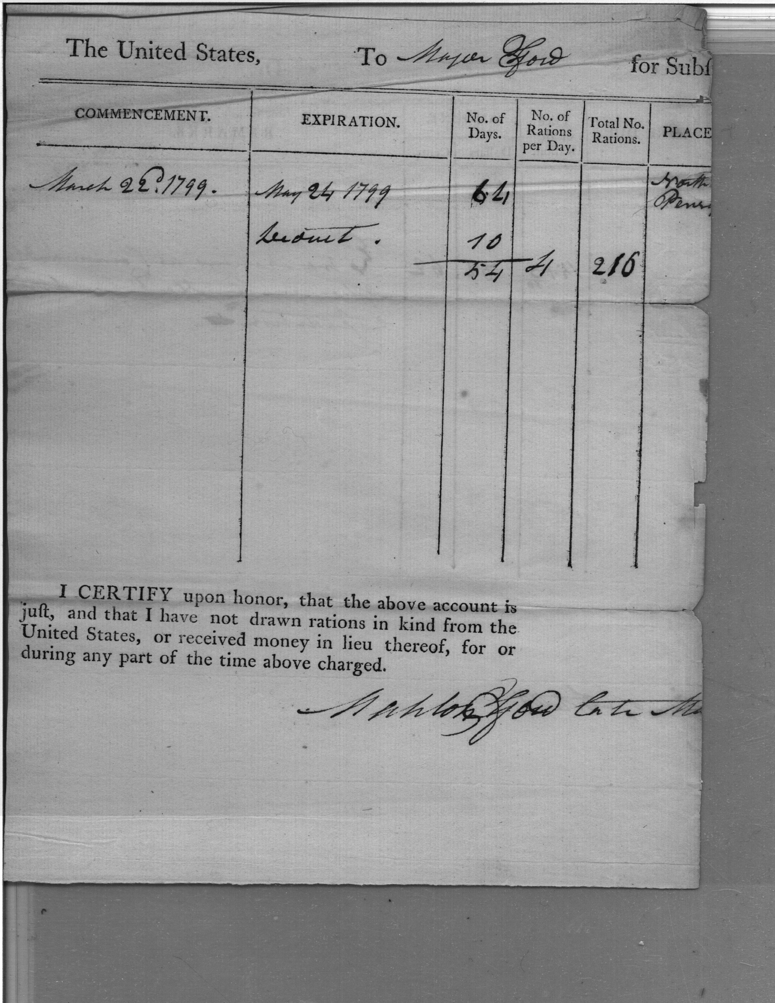 Document ViewerMajor Ford's Subsistence Account