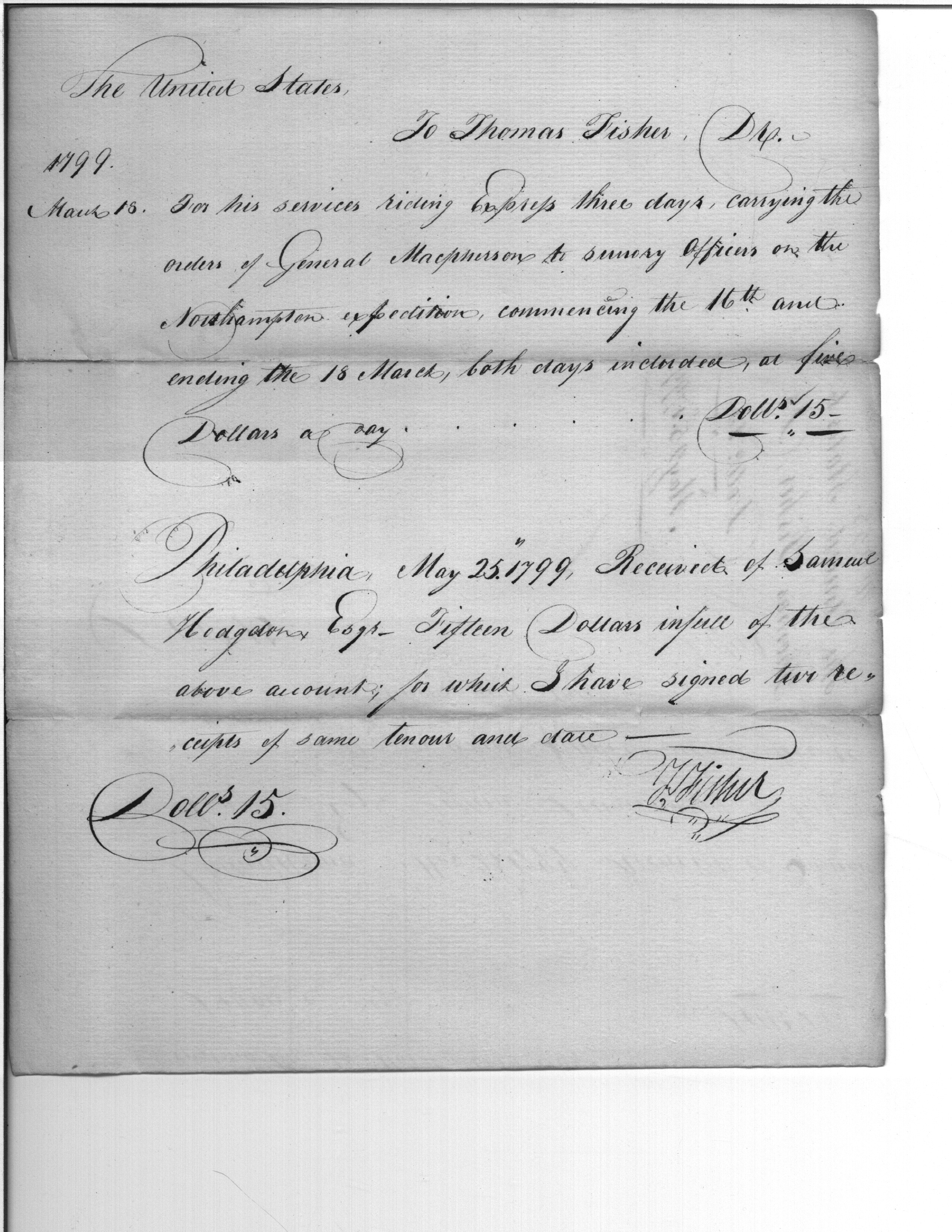 - Document: Payment to Mr Fisher for services carrying orders for General Macpherson