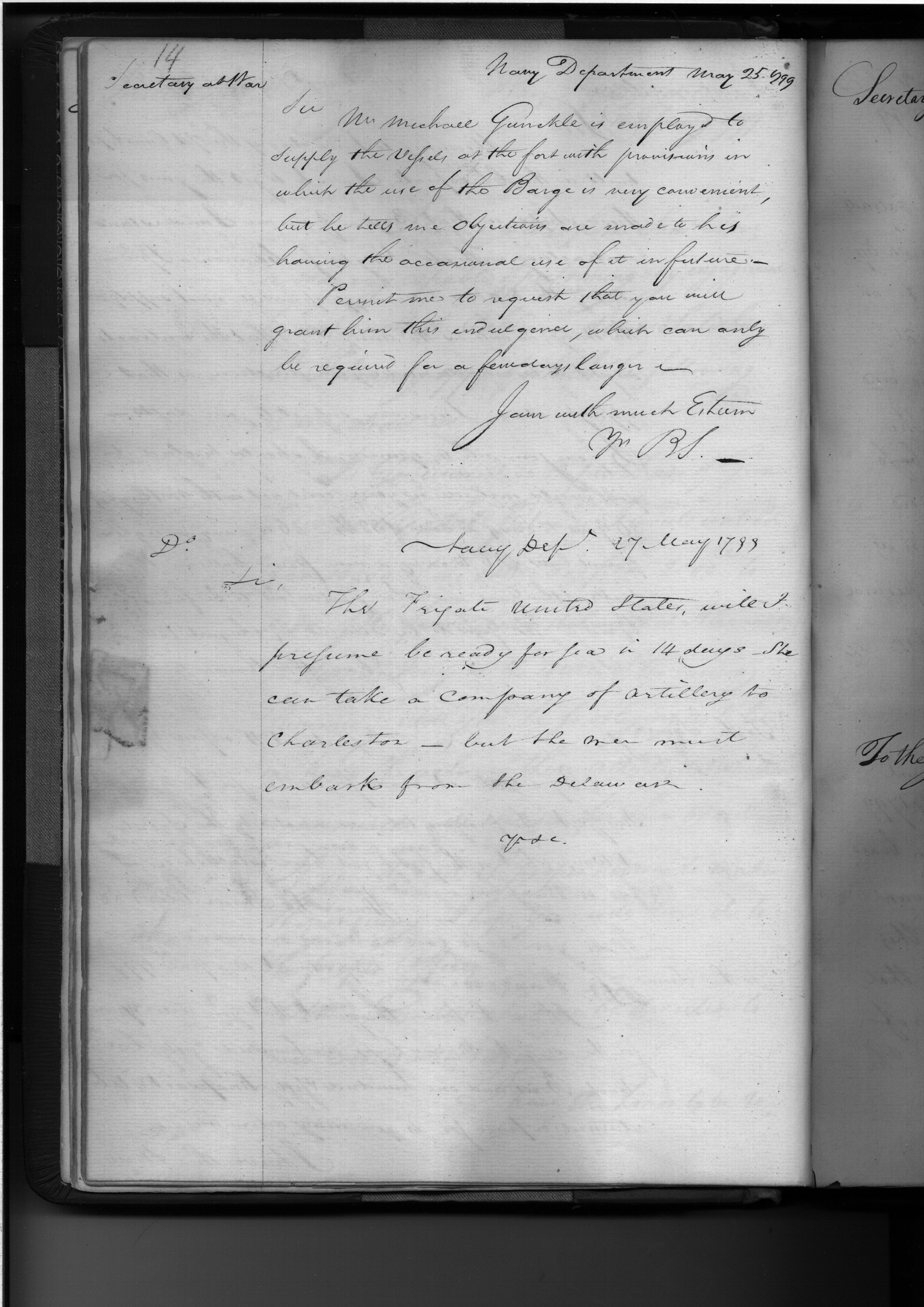 - In source: Collection: Letters Sent by the Secretary of the Navy to Federal Executive Agents (Letters to President, Secretary of State, Secretary of War, and Letters to (Requisitions on) Secretary of the Treasury and other Treasury Department Officials), June 1798-June 1824. (RG45)
