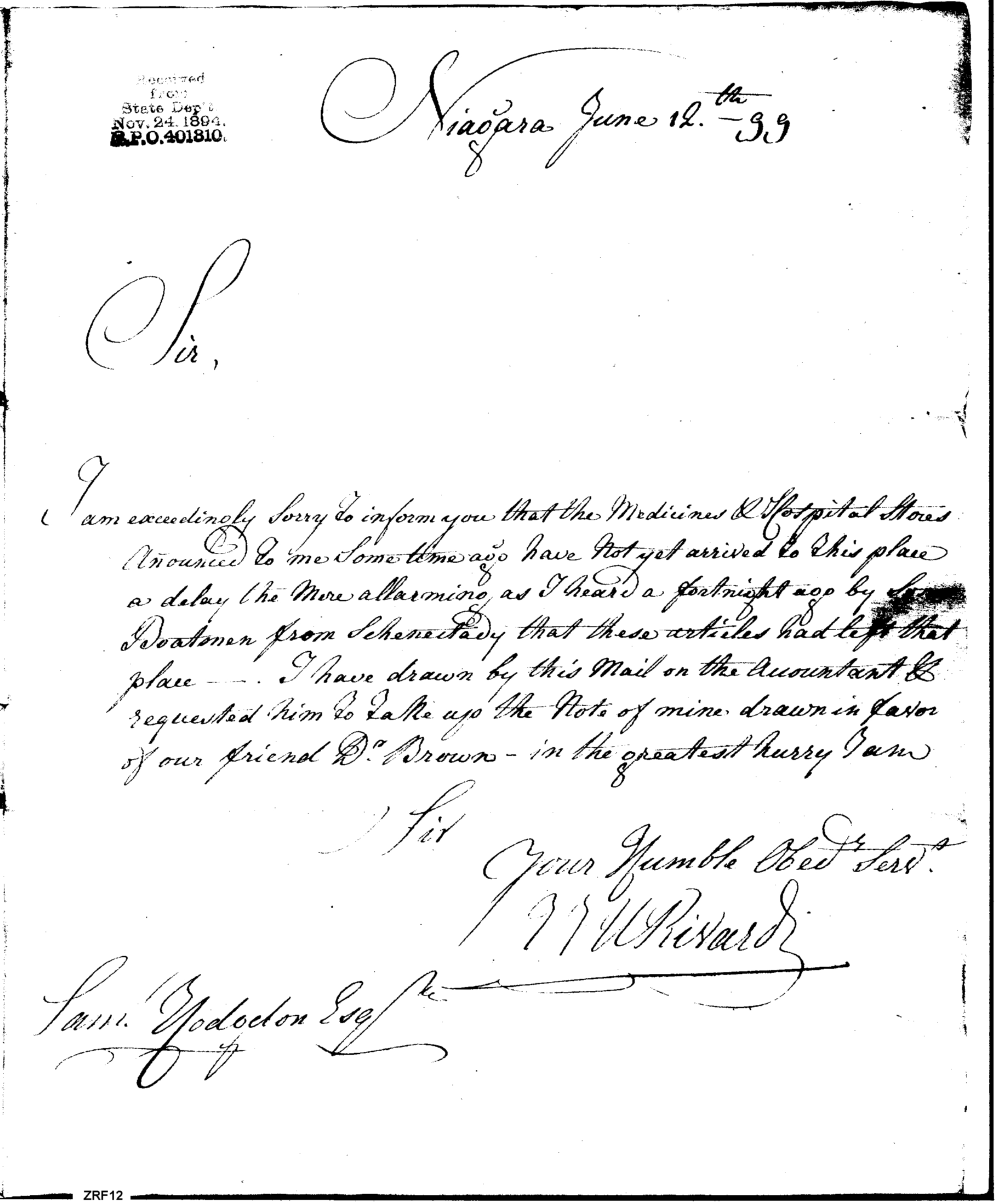 - Document: Medicine & Hospital Stores Not Yet Arrived at Niagara