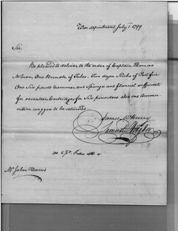 - Document: Request for Issue of Cannon Implements & an Ammunition Wagon