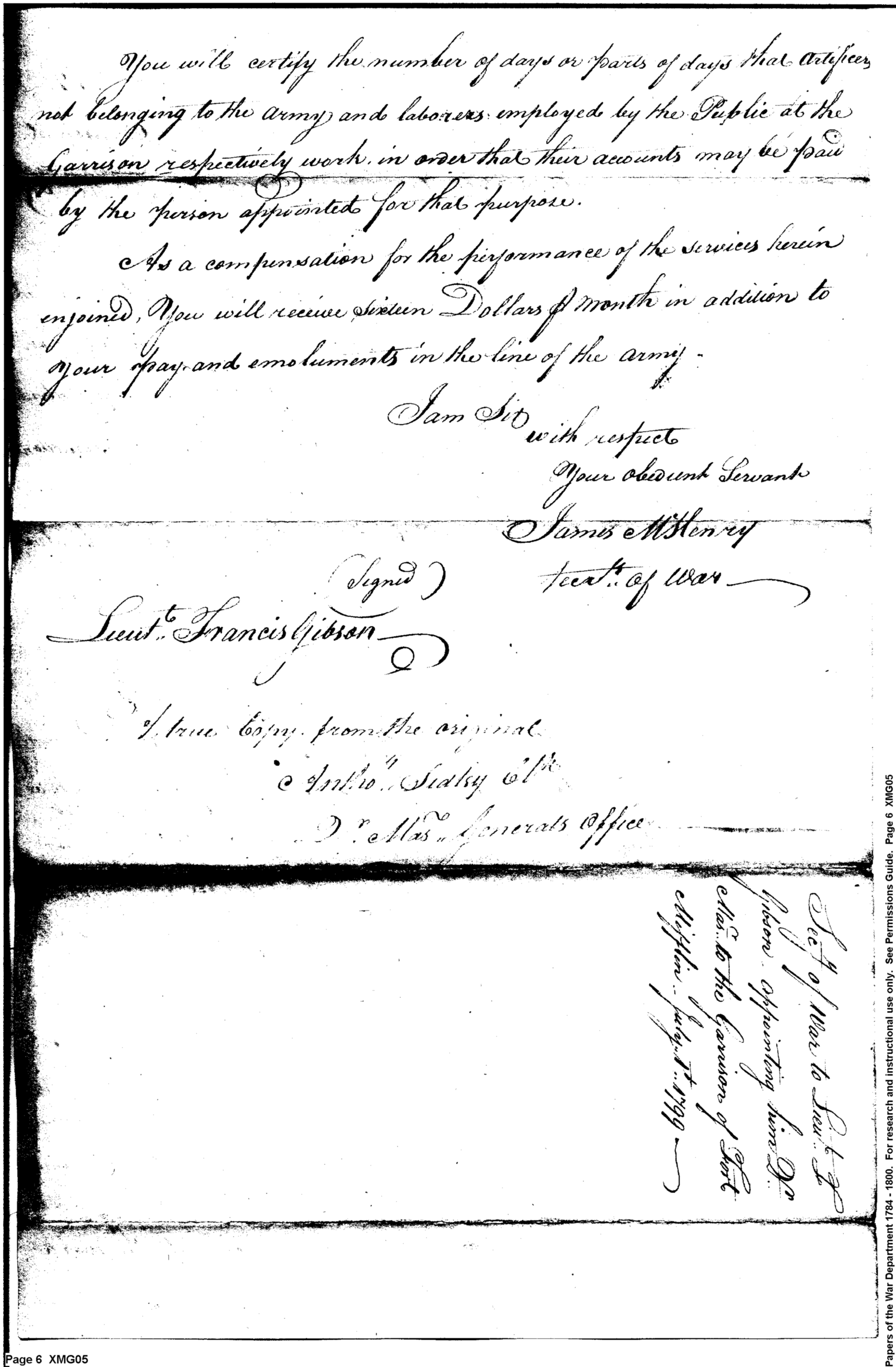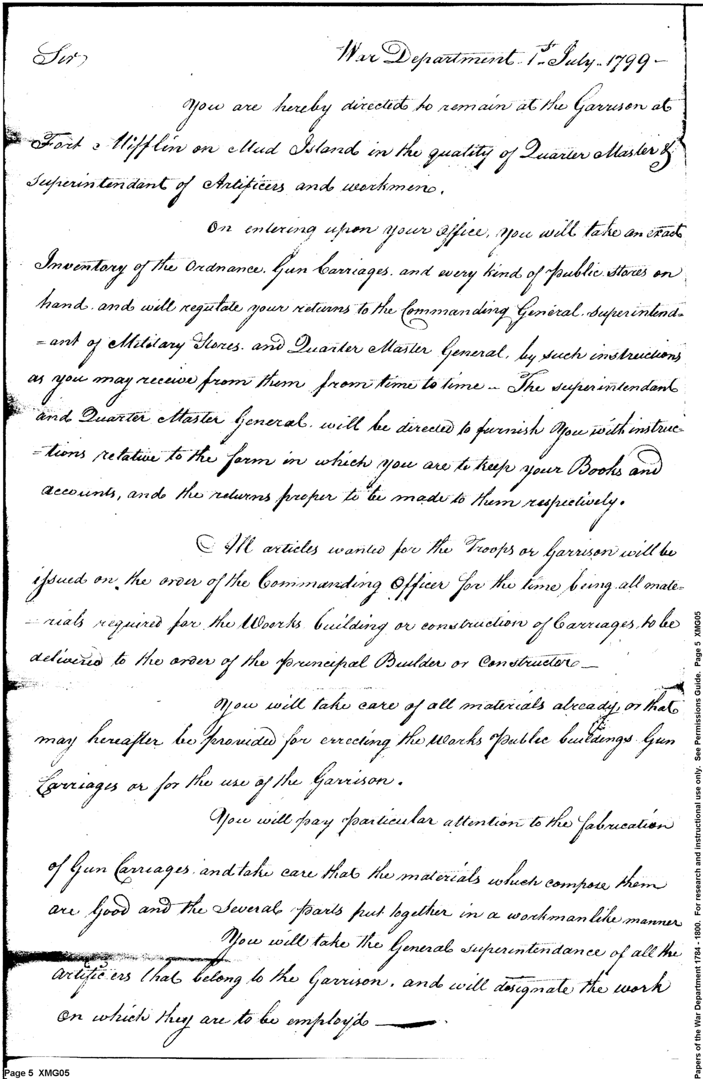 - Document: Orders to remain at Fort Mifflin Garrison on Mud Island