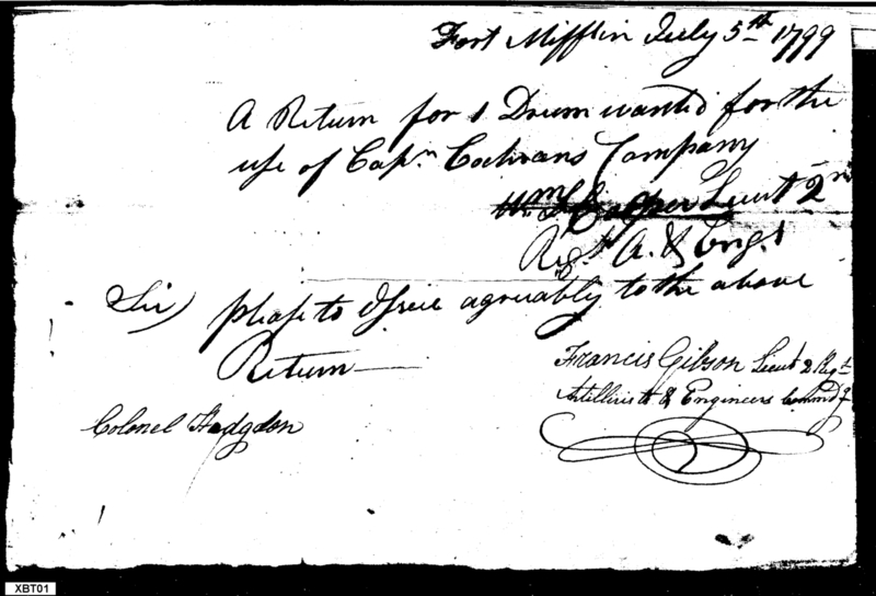 - Document: Request and Order for Issue of a Drum to the 2d Regiment of Artillerists & Engineers