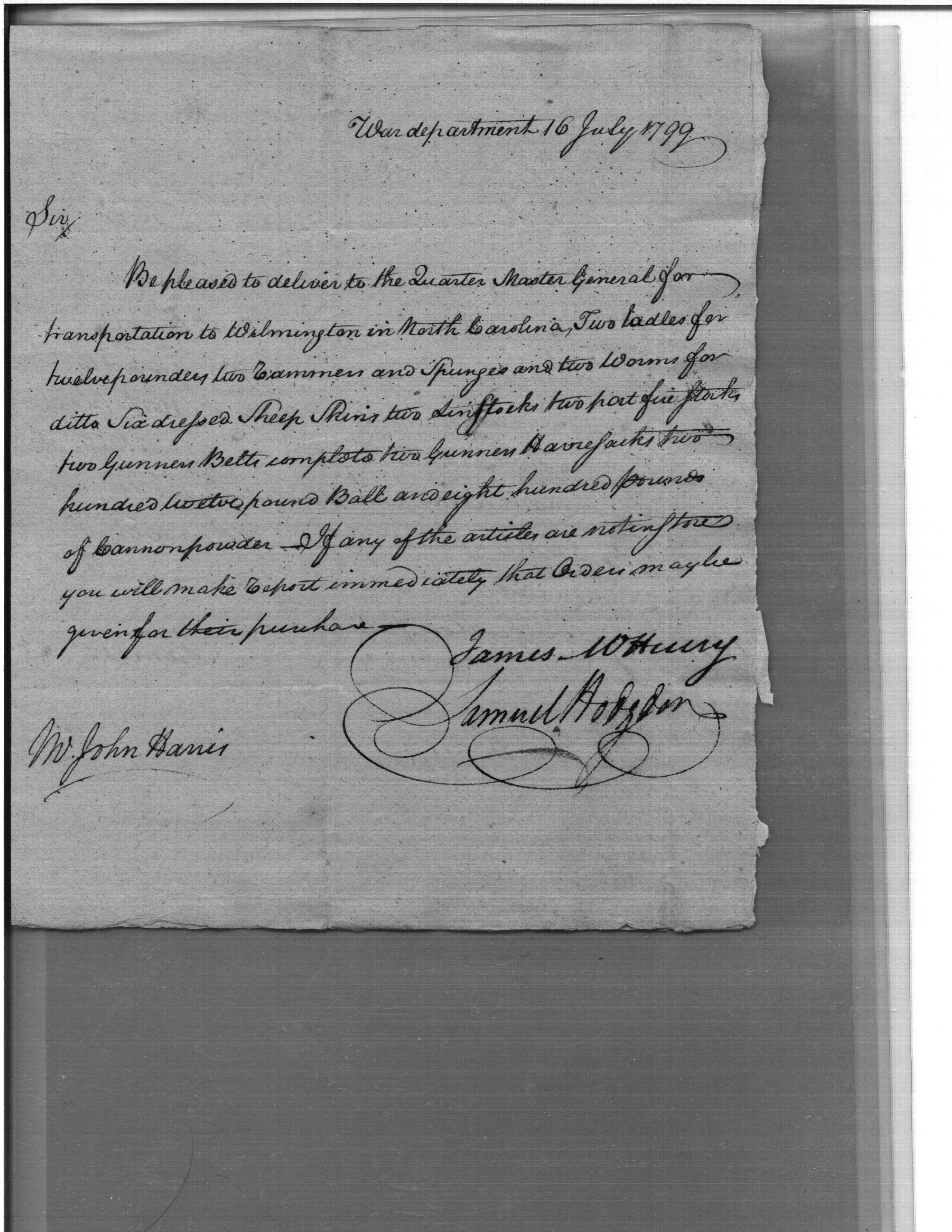- Document: Request for Issue of Cannon Implements to Wilmington