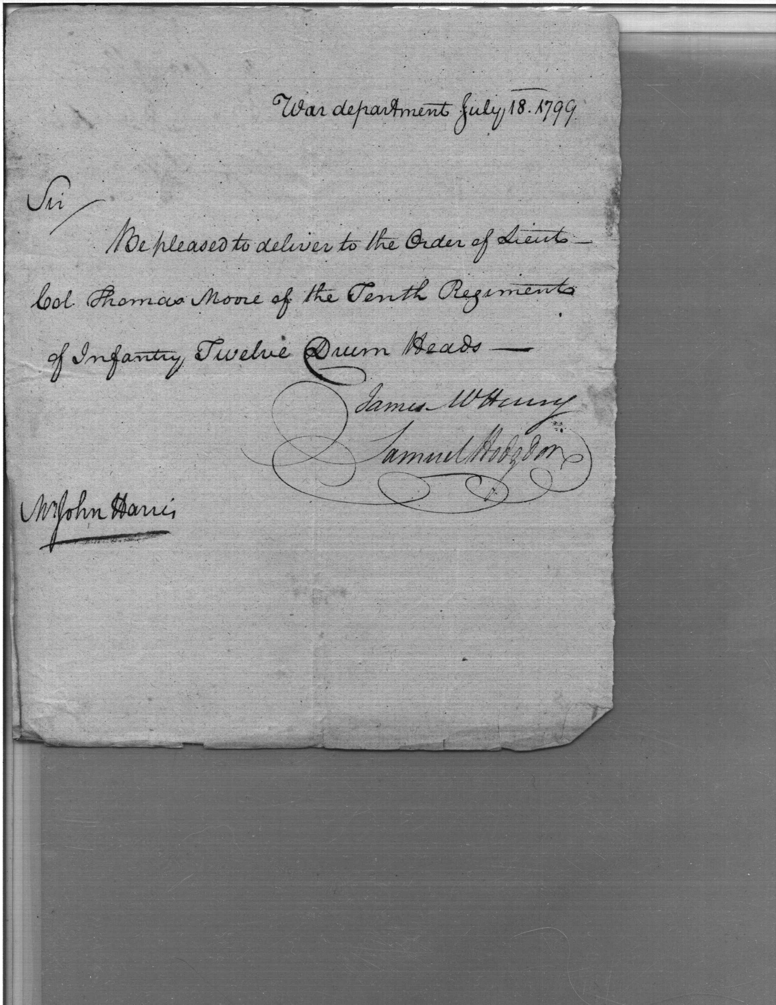 - Document: Request for Issue of Drum Heads for the 10th Regiment