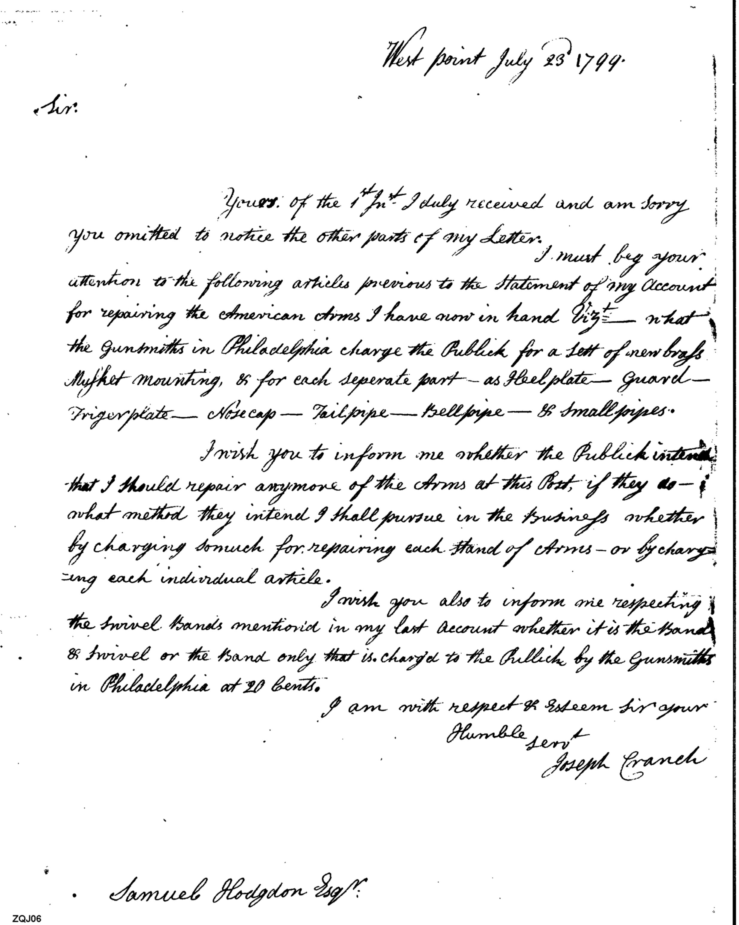 - Document: Charge for Repairing Arms at West Point