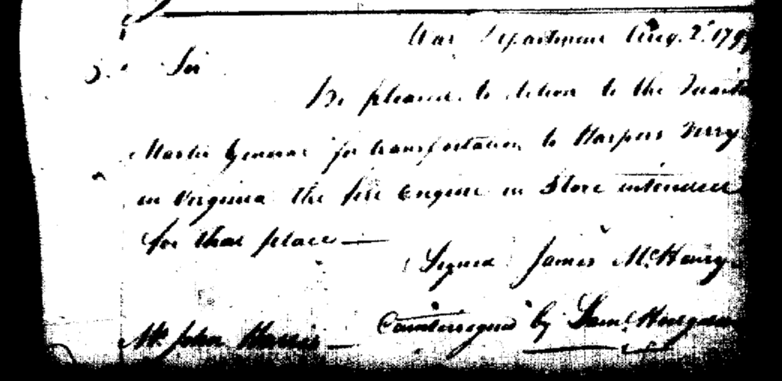 - Document: Request to Deliver Fire Engine for Harpers Ferry, Virginia
