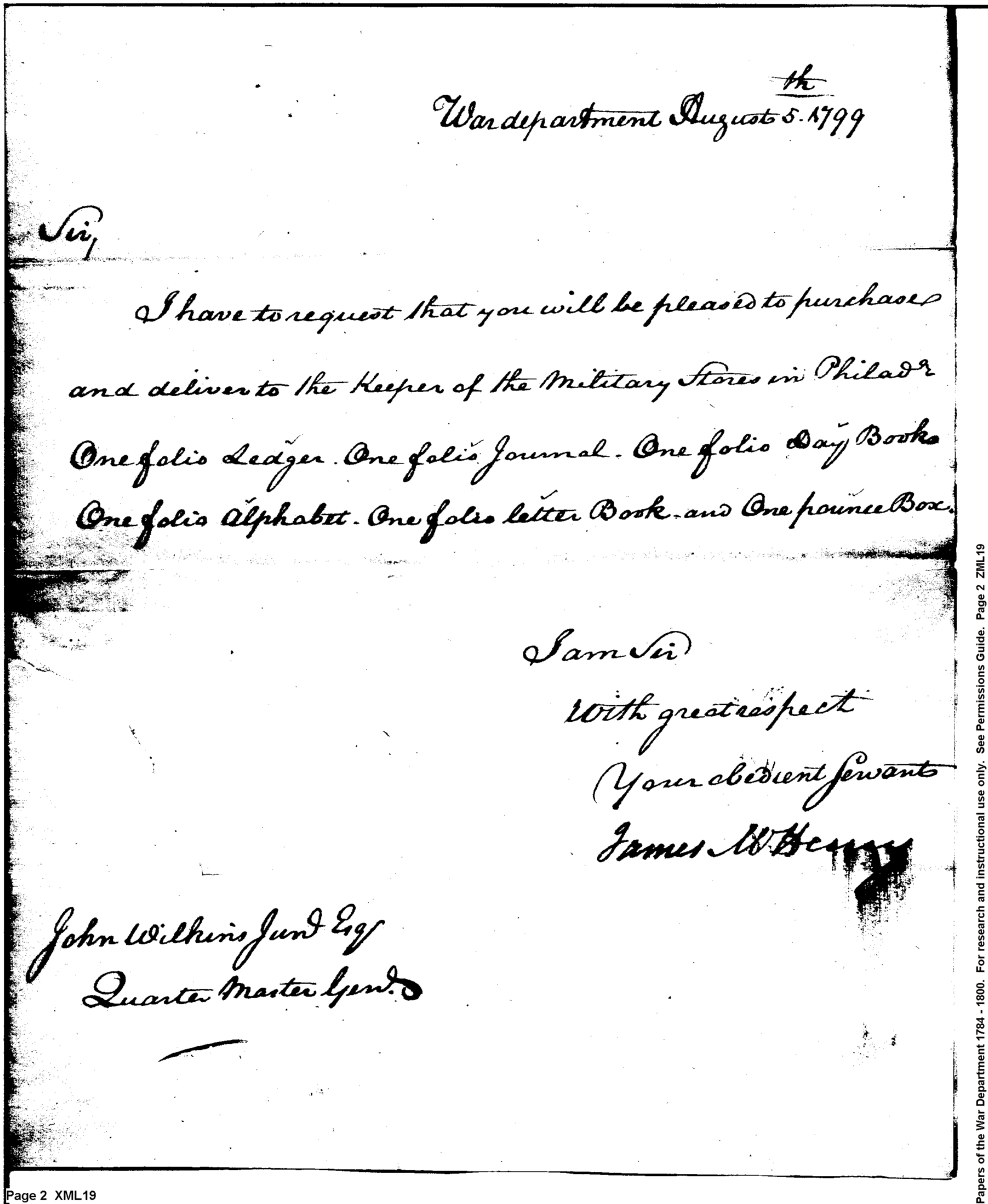 - Document: Request for delivery of ledgers to keeper of military stores