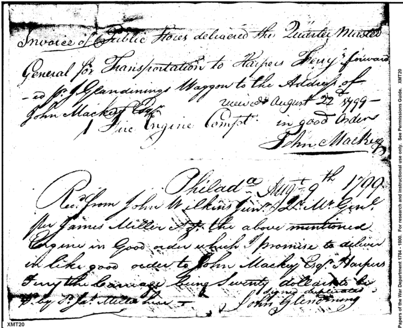 - Document: Receipt for delivery of fire engine to Harpers Ferry