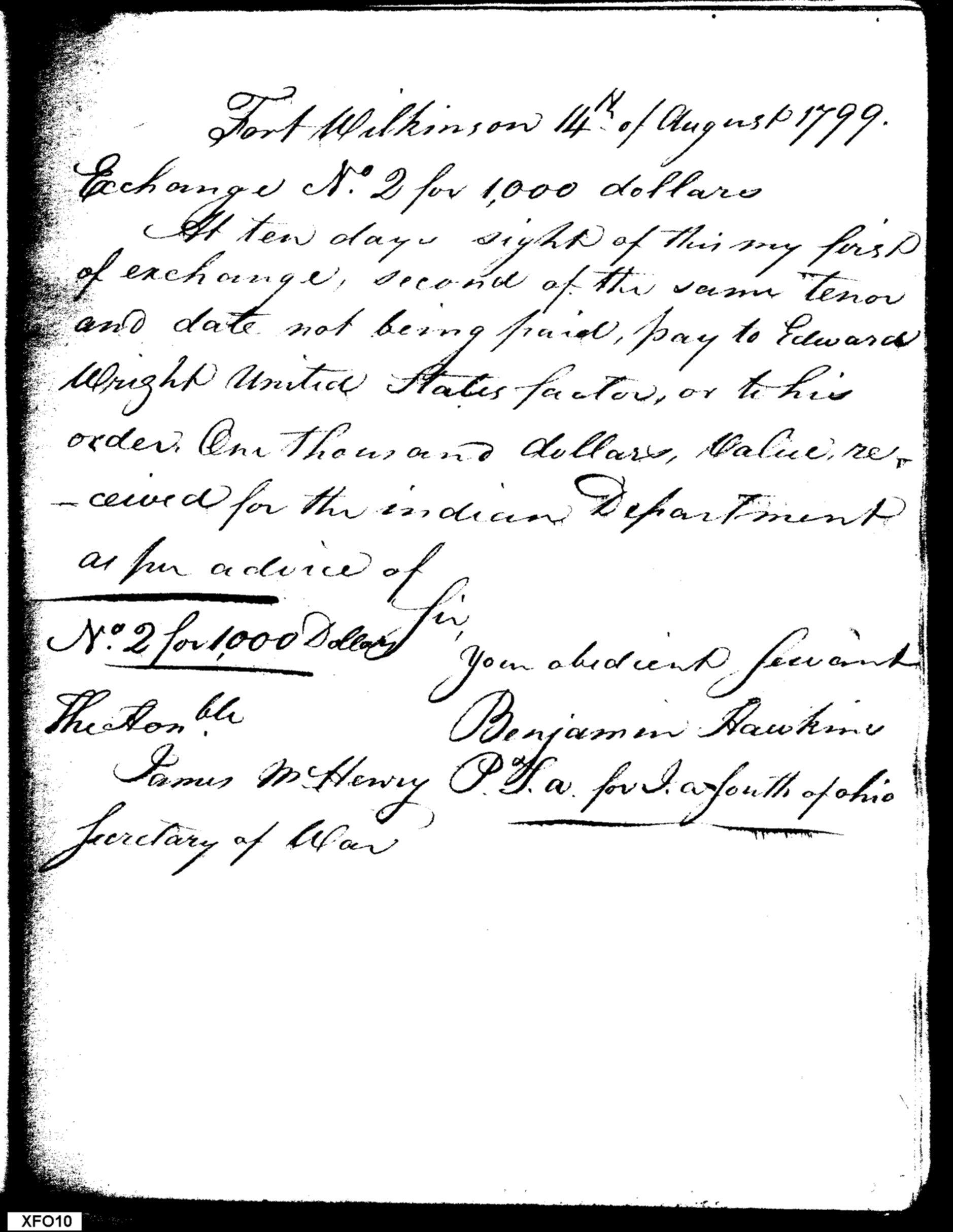 - In source: Collection: Records of Fort Wilkinson Garrison (Among Creek Factory Records), 1795-1801. (RG75)