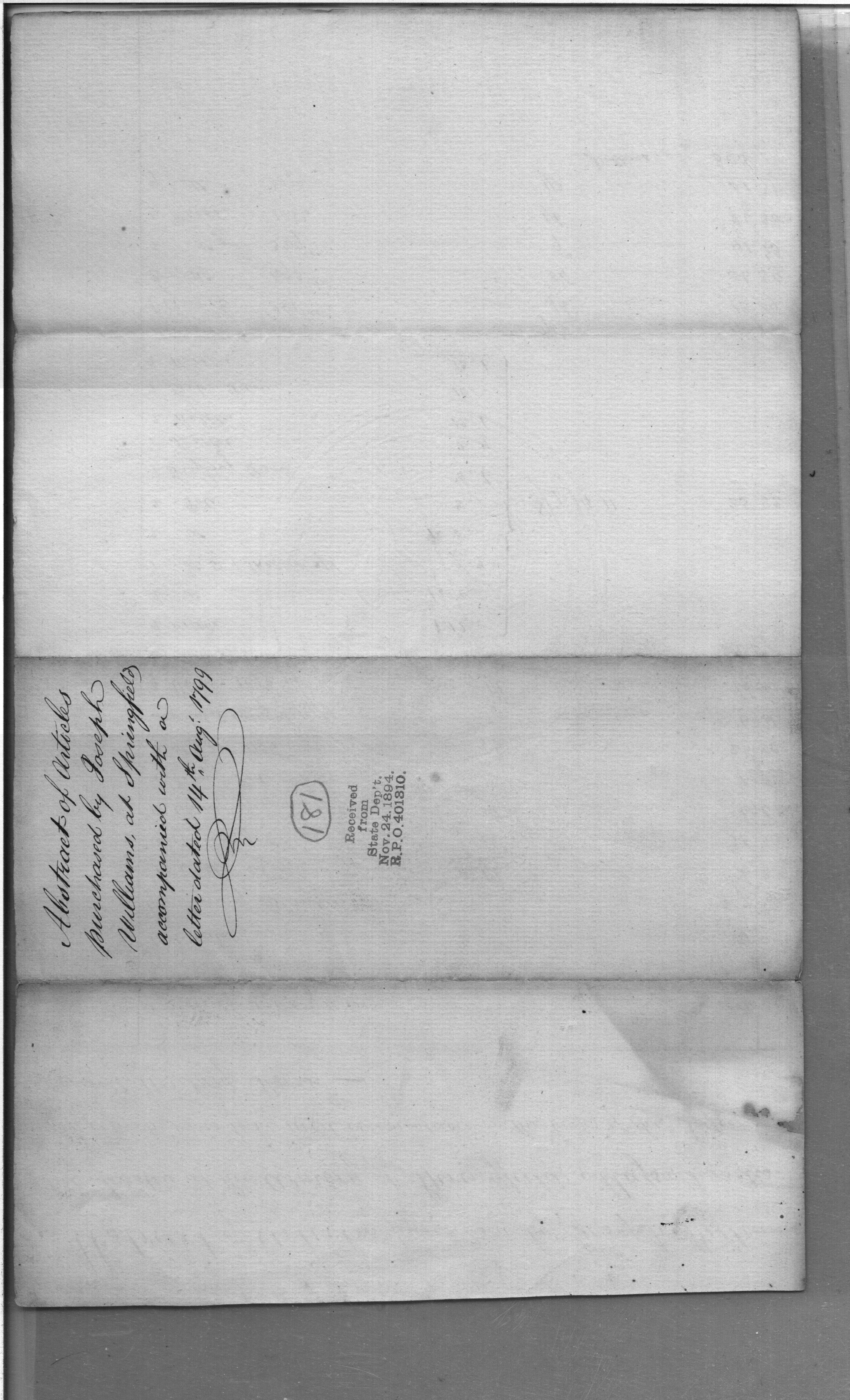 - Document: Abstract of articles purchased by Joseph Williams at the armory at Springfield Massachusetts