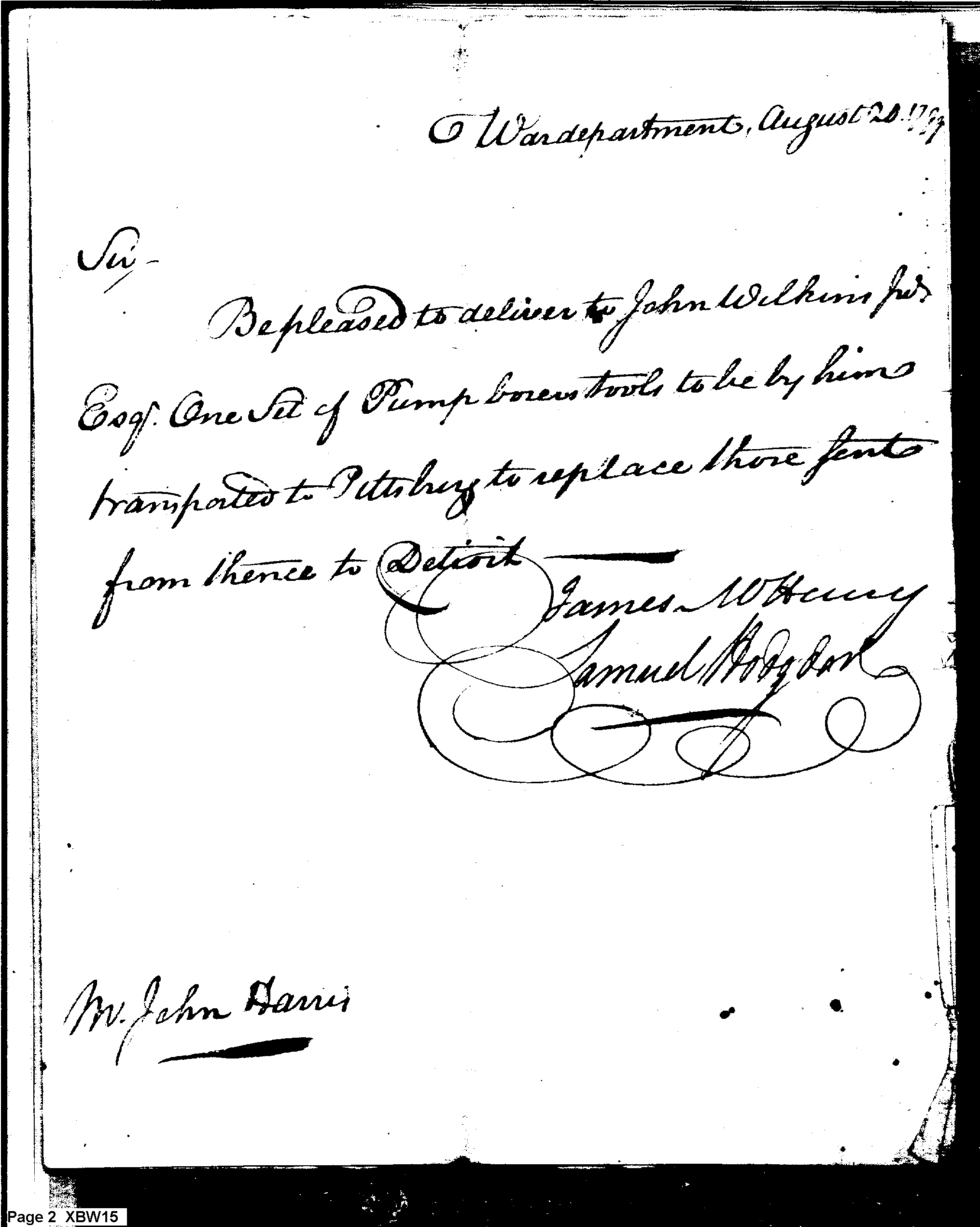 - Document: Request for Issue of Pump Borer Tools to Pittsburgh