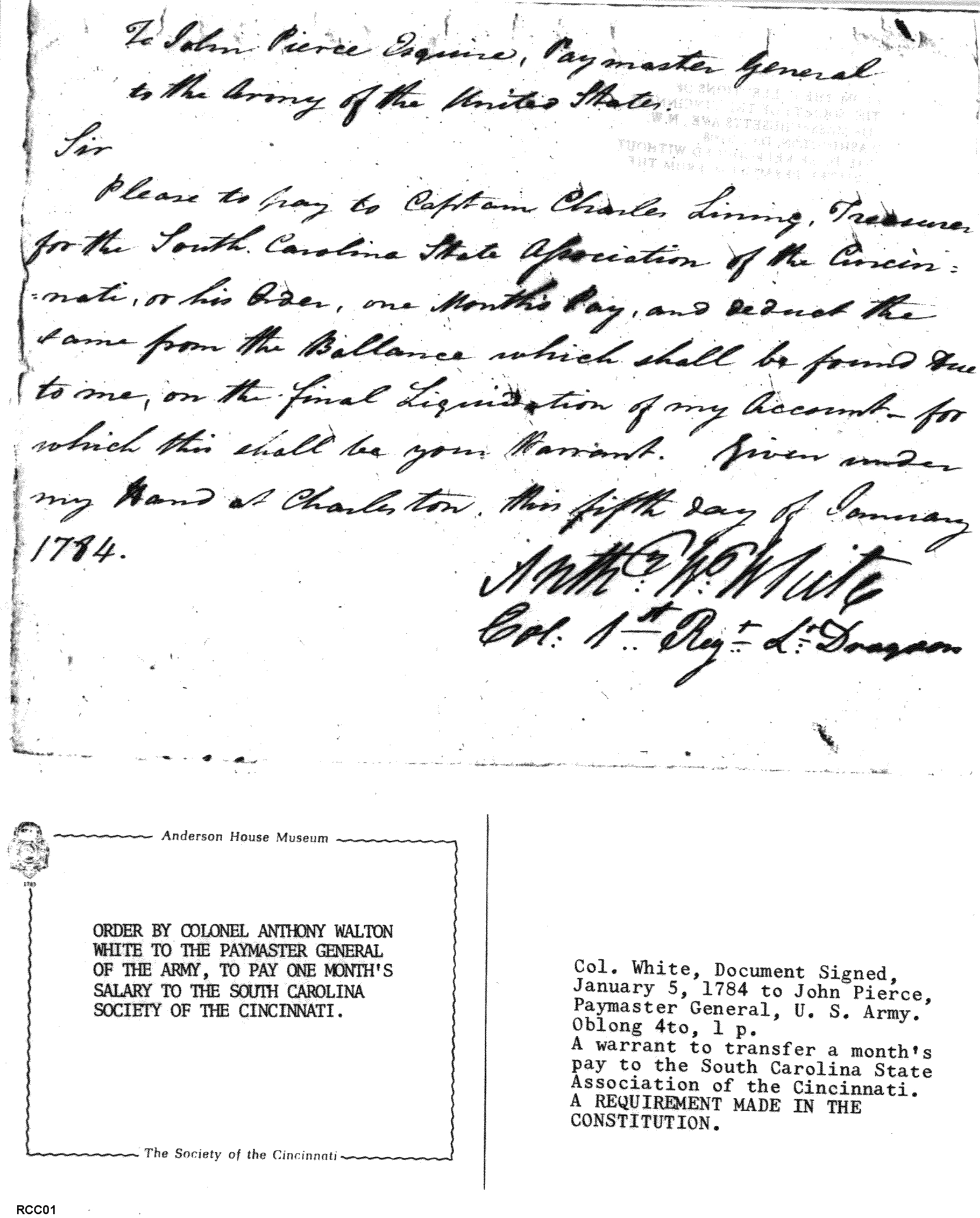 - Document: Warrant for Transfer of Pay from White to Pierce