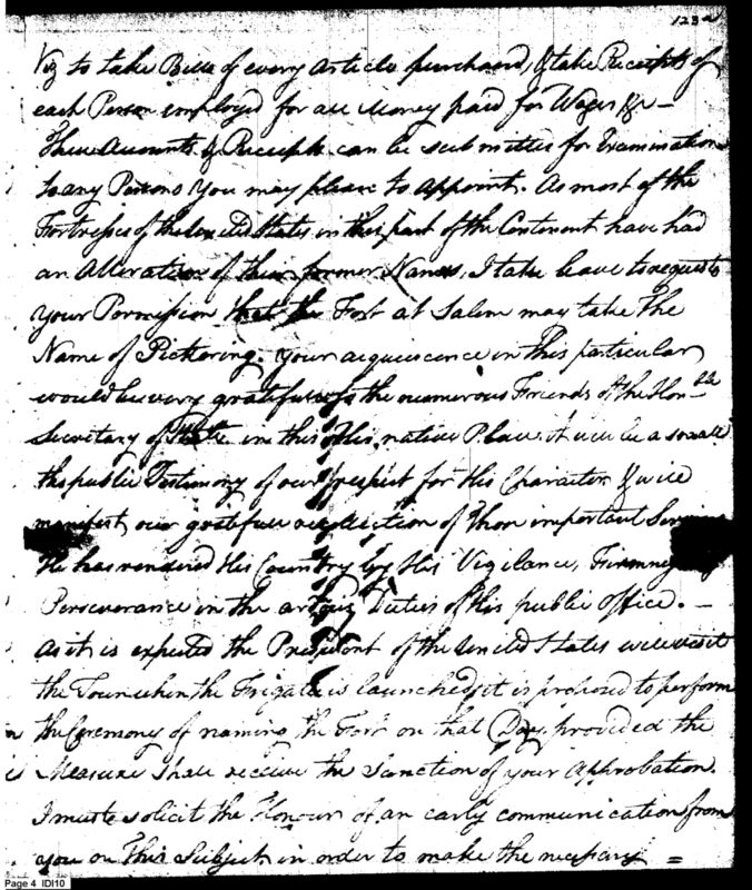 - Document: Details Surrounding Construction & Naming of Fort [Pickering] at Salem