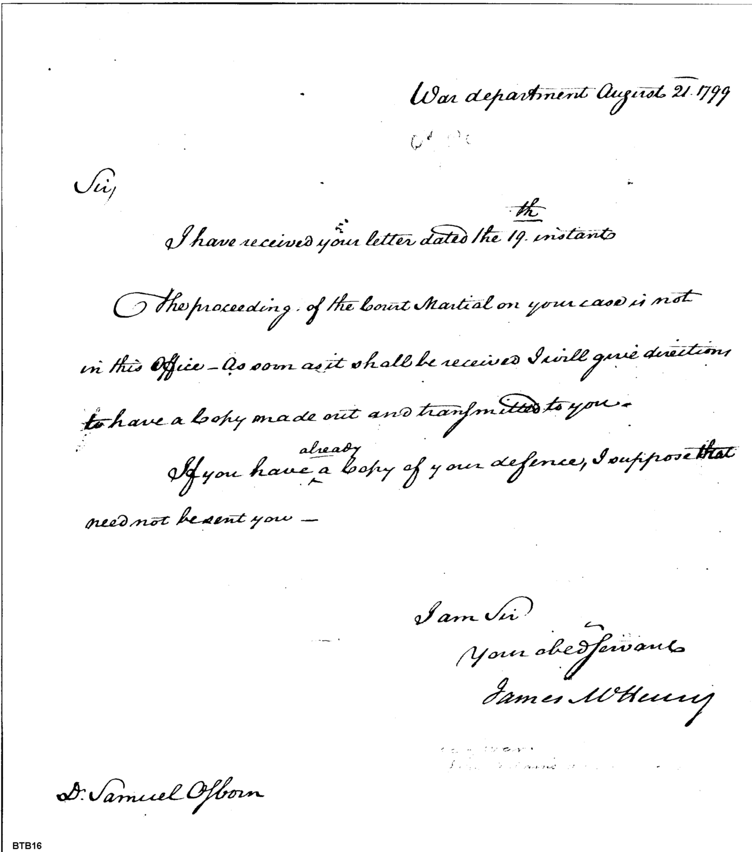 Letter from the Secretary at War