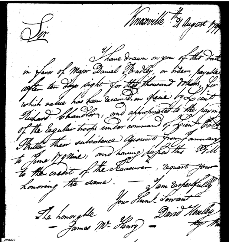 - In source: Collection: Letters Sent by David Henley, Agent of the War Department, May 1, 1799-May 7, 1800. (RG217)