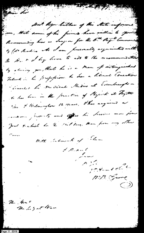 Recommendation of Doctor for 6th Regiment