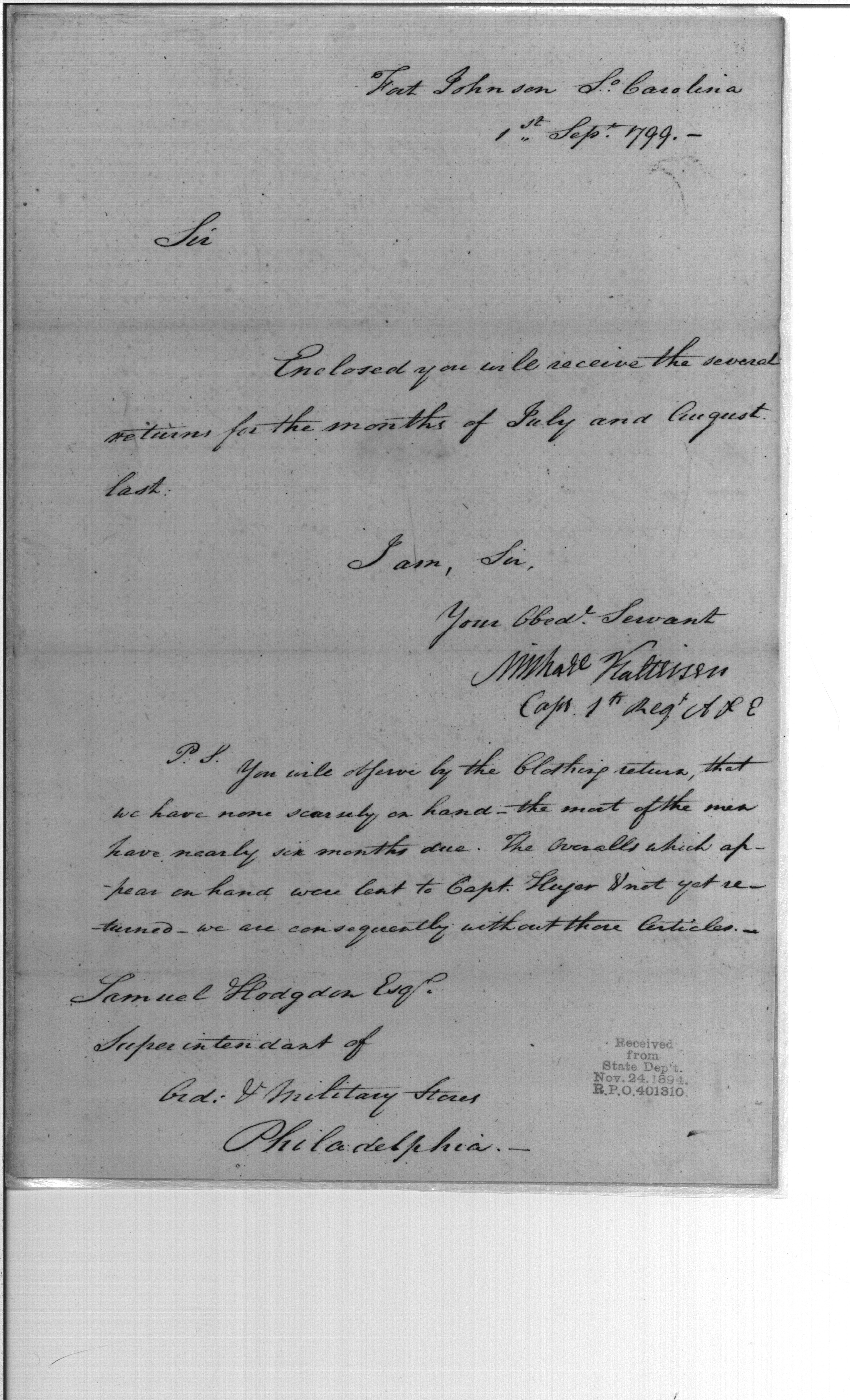 Post Revolutionary War Papers, 1784-1815. (RG94)