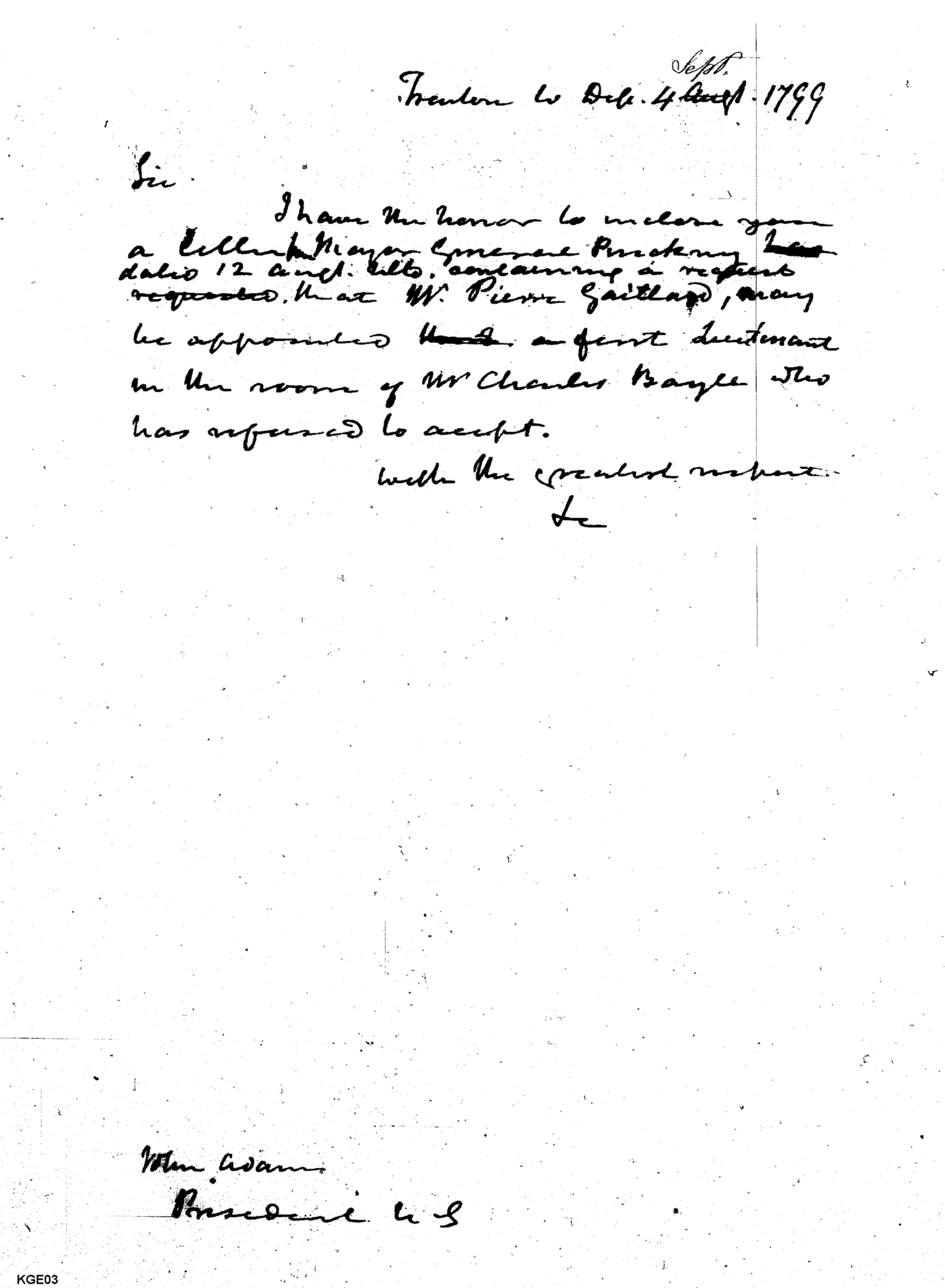 - Document: Announces Approval of Pierre Gaitlare as First Lieutenant