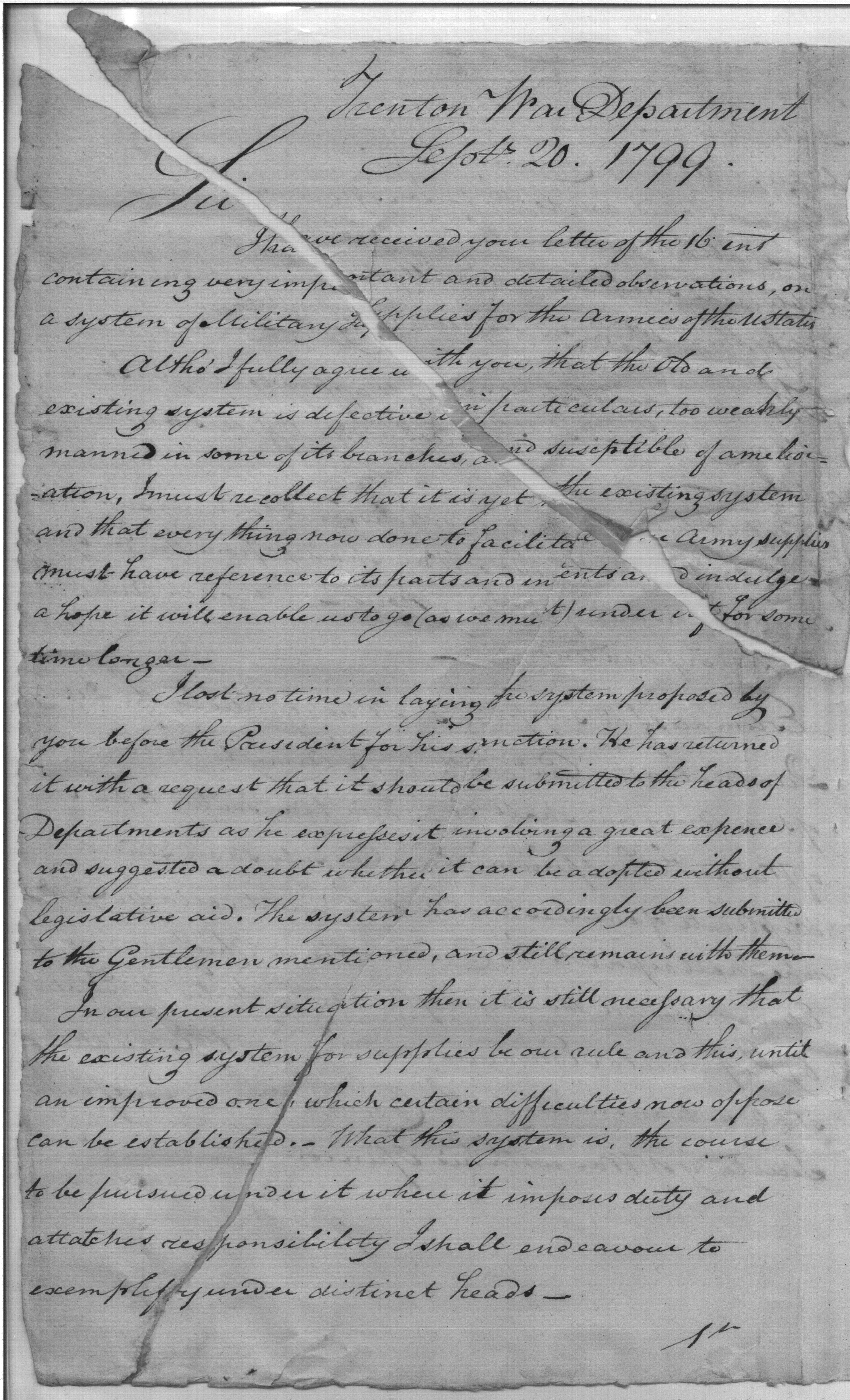 - Document: Discussion of New Supply System for the Army, and Review of the Current System