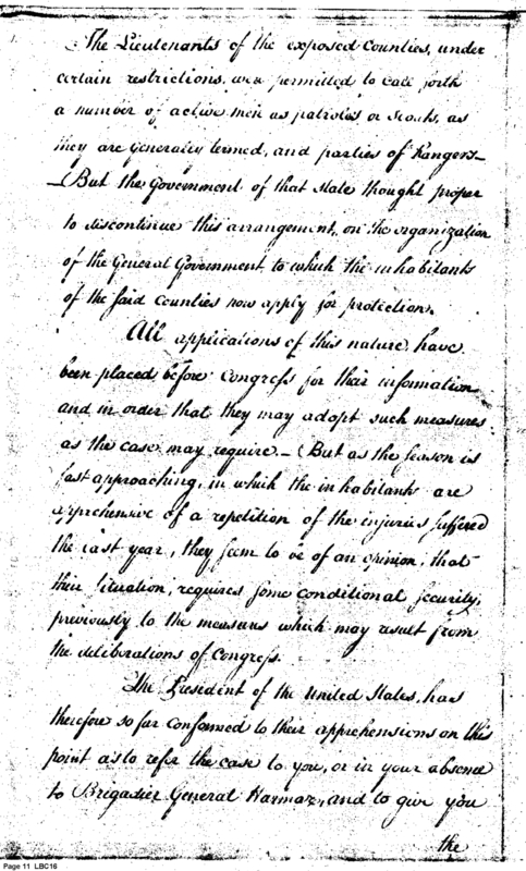 Document ViewerCopy of Instructions to the Governor of the Western Territory, or in his absence the Brigadier Gen. Harmar Copied 15th April (dated 3 March 3) 1790