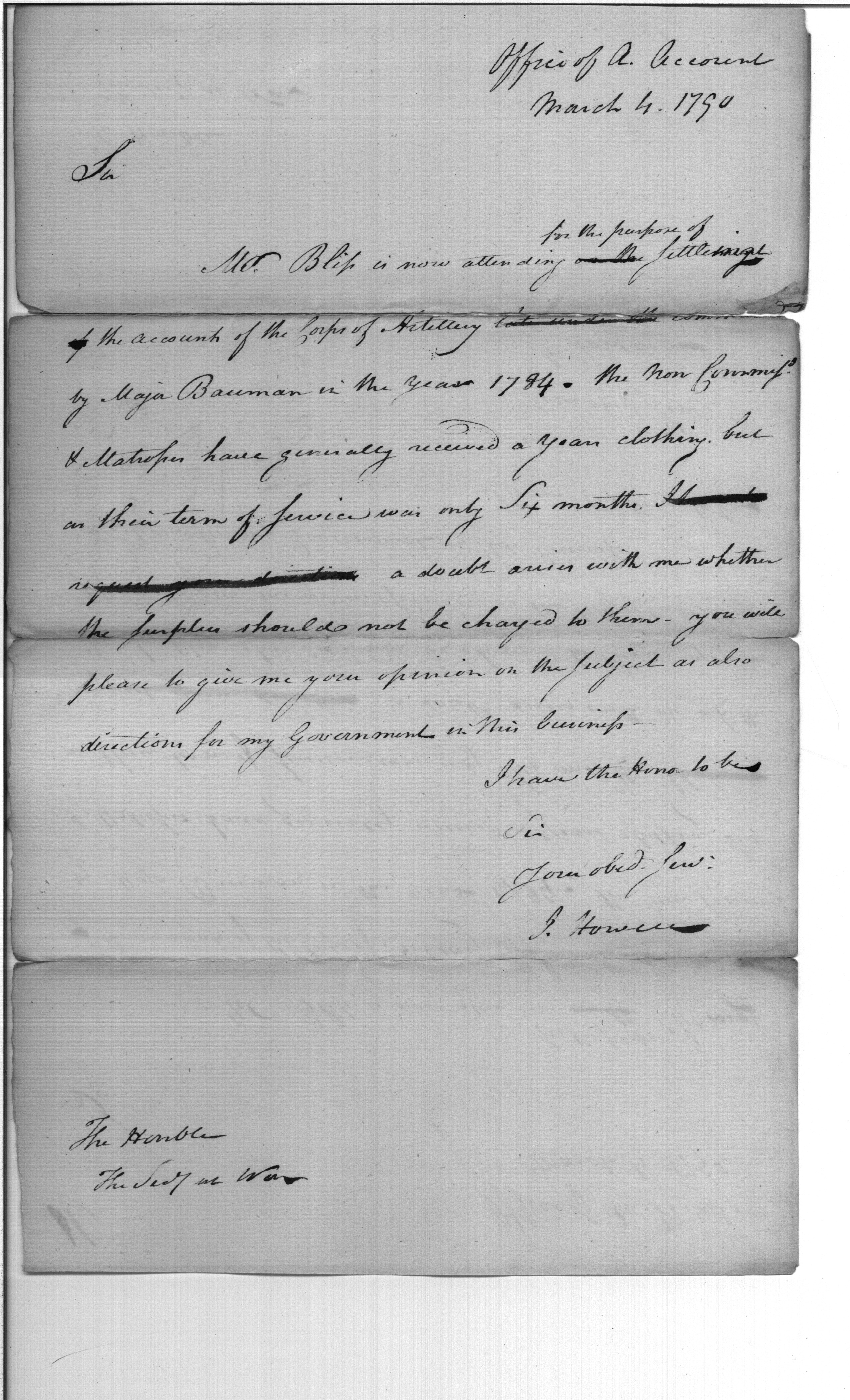 - Document: Settling of accounts with Corps of Artillery in 1784