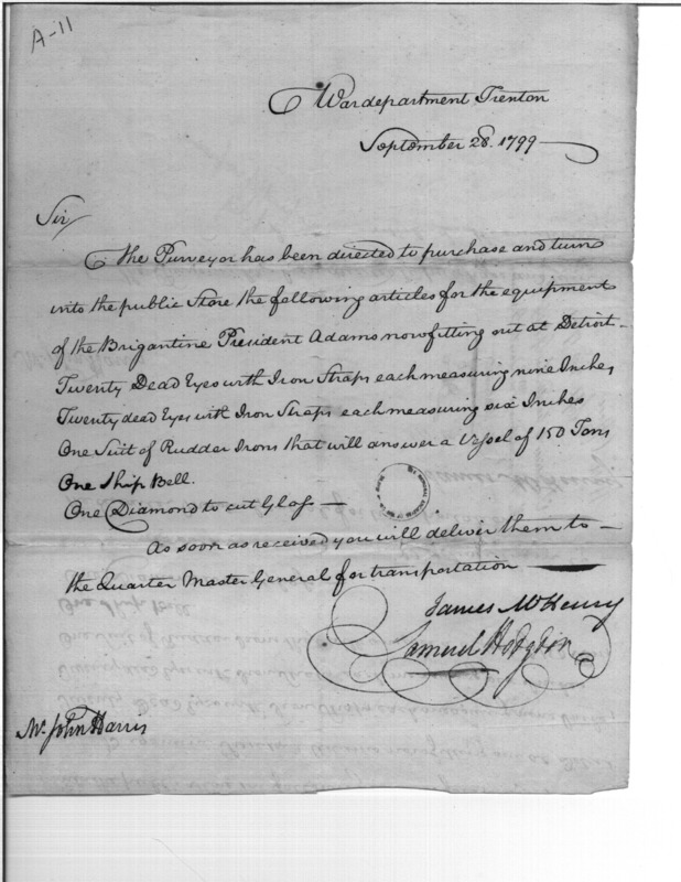 - Document: Orders to Deliver Materials for Brigantine President Adams