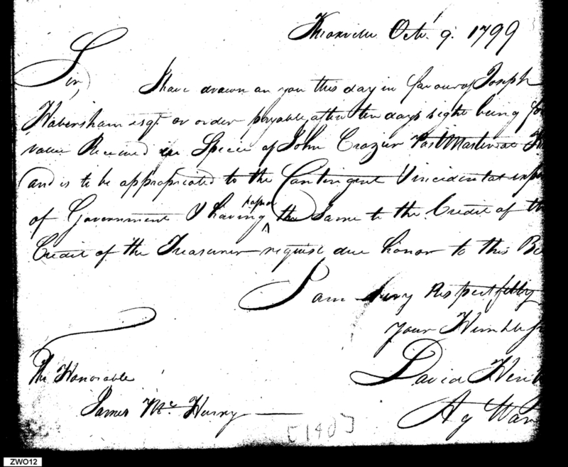- In source: Collection: Letters Sent by David Henley, Agent of the War Department, May 1, 1799-May 7, 1800. (RG217)