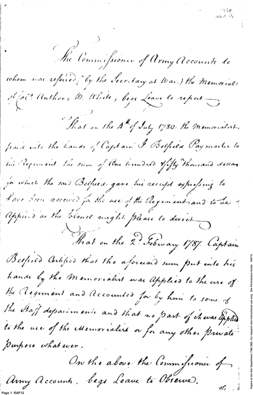 - Document: Report on Army Accounts Memorialist by Commissioner