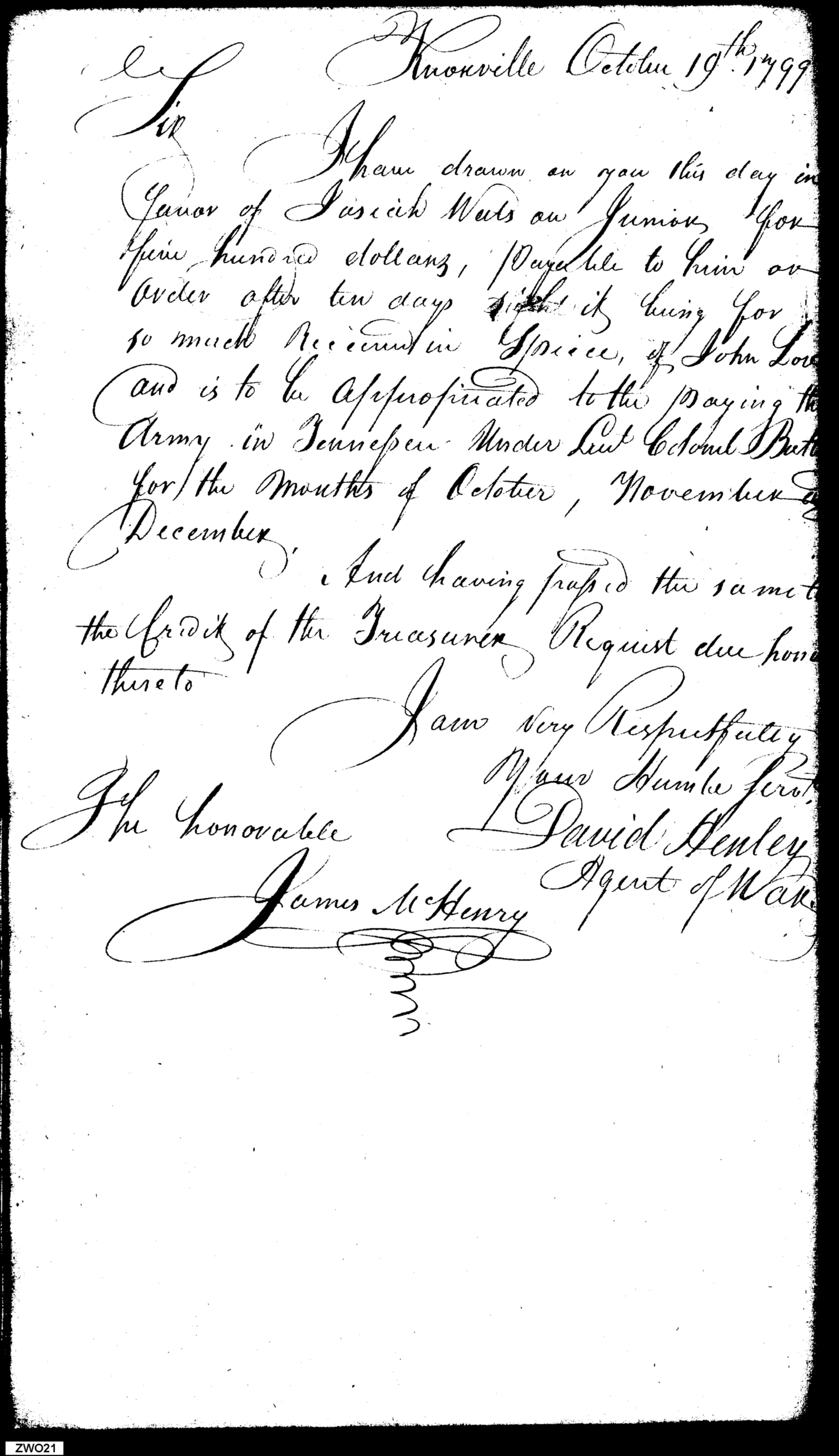 - In source: Collection: Letters Sent by David Henley, Agent of the War Department, May 1, 1799-May 7, 1800. (RG217)