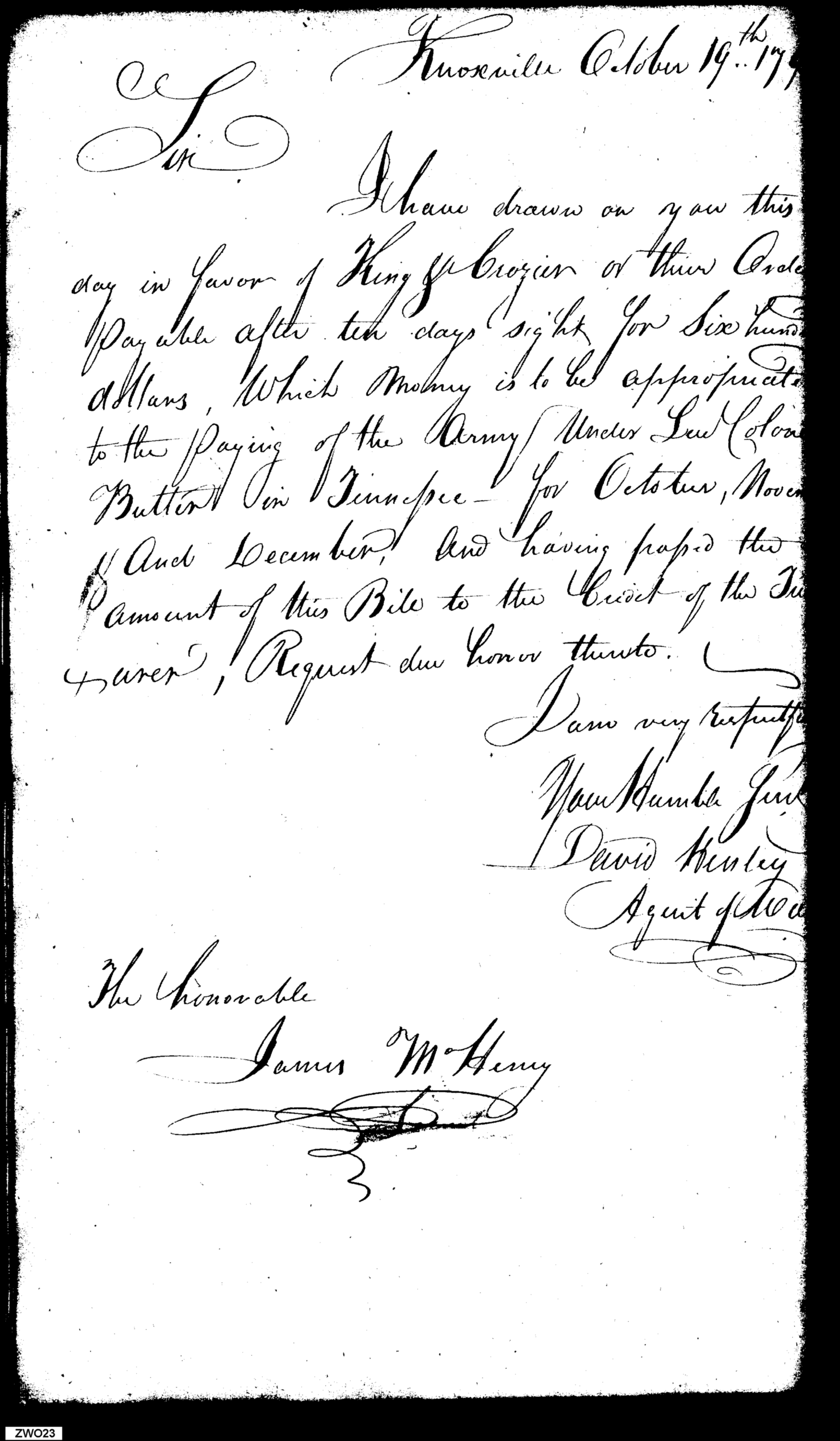 - Document: Requests Payment for King & Crozier to Pay Tennessee Army under Lieutenant Colonel Butler